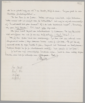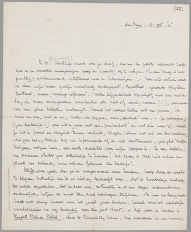 Ik las Rens in de Groene. Kolder met eenige waarheid, mijns bedunkens. Welke waarde heeft het manifest voor de Hottentotten? Dit vroeg ik mij ook onmiddellijk af. Er antwoordt toch zeker iemand? Of is de heele Distelvinck kapot? - Ik ontving nog geen ‘Vrije Bladen’, P.C. komt zeker deze week.