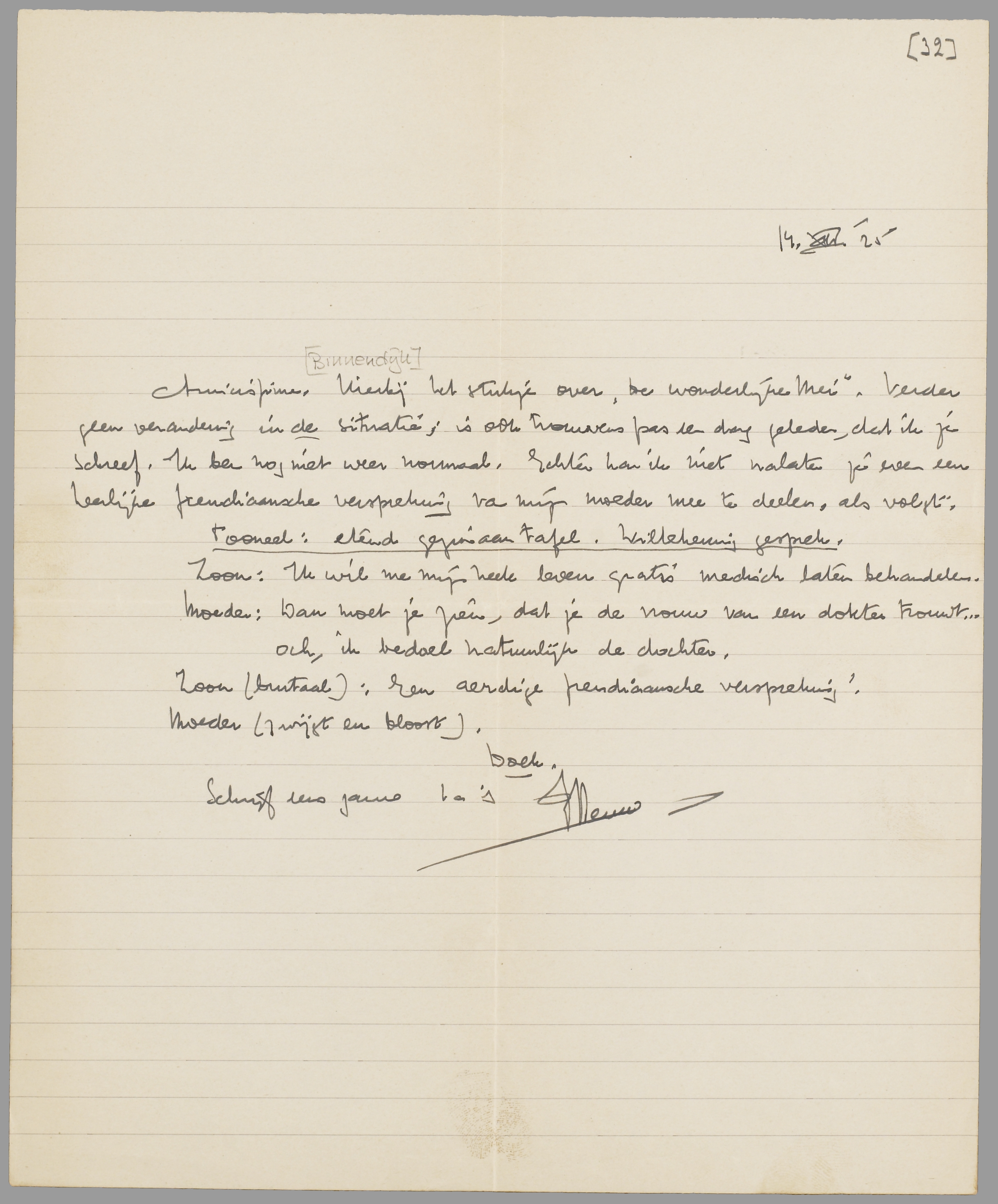 Hierbij het stukje over ‘De wonderlijke Mei’. Verder geen verandering in de situatie; is ook trouwens pas een dag geleden, dat ik je schreef. Ik ben nog niet weer normaal. Echter kan ik niet nalaten je even een heerlijke freudiaansche verspreking van mijn moeder mee te deelen, als volgt: