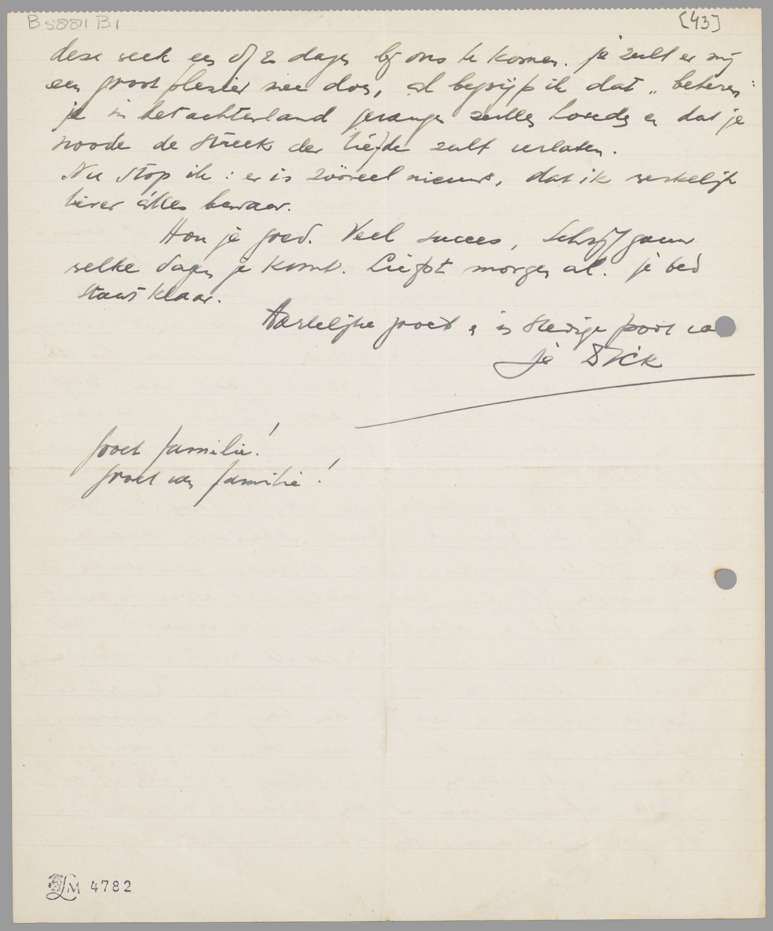 Hou je goed. Veel succes. Schrijf gauw welke dagen je komt. Liefst morgen al. Je bed staat klaar.