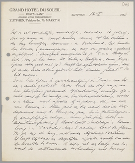 Morgen ga ik, waarschijnlijk met Greshoff, naar Nico Donkersloot. De ruzie met Henrik is in der minne door tusschenkomst van Mies, geschikt. Inderdaad zal deze week ook de 2e druk van Erts uitverkocht zijn! Laat Wim die kloot afdoende en scherp terugschrijven: het gaat werkelijk te ver. Dolhain liet hij twee keer betalen! - Kom nu zoo gauw mogelijk (mét Jo!) in Amsterdam. Ik wil weer eens ouderwetsch ouwehoeren. Ook over Parijs, waar we stellig heen gaan met Paschen. Ik ben van plan te ‘sparen’ : àl het Honorarium van Van Looy, van de Gids waarvoor ik mijn eerste stukje gisteren afleverde, en zal me verder rijk stelen en leenen! Doe je mee?