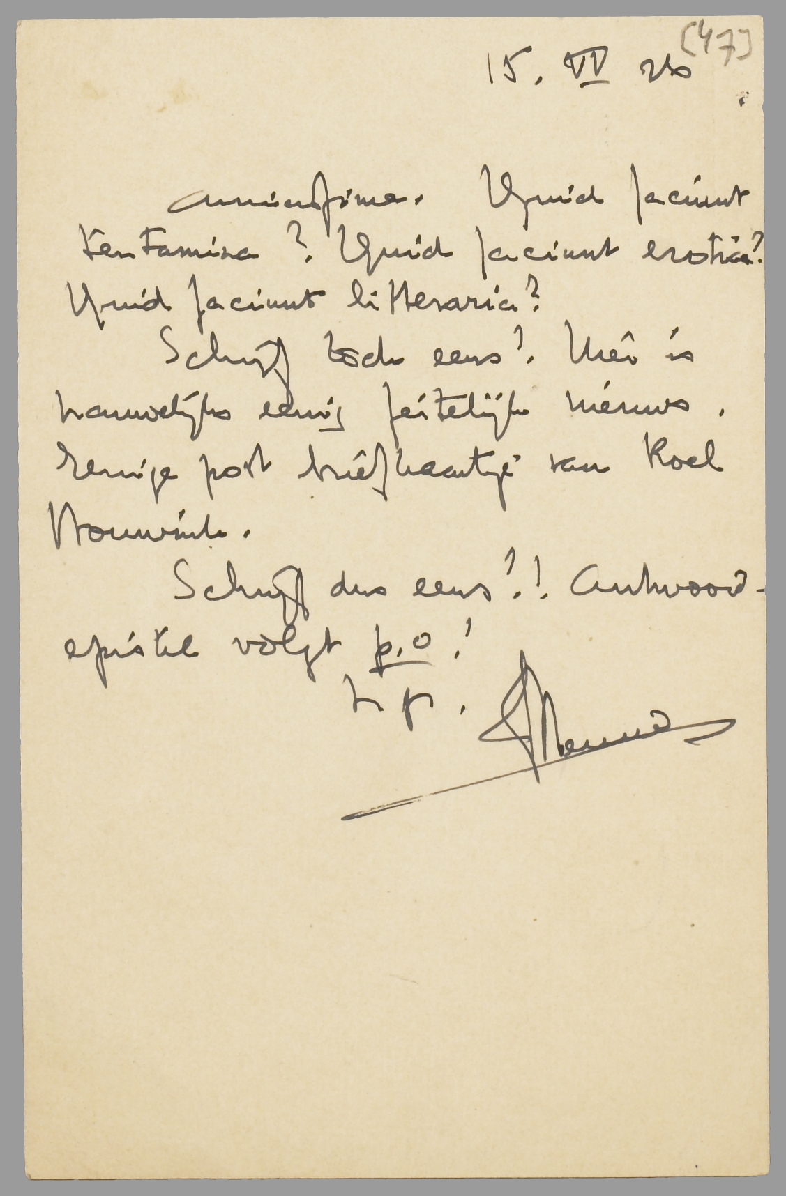 Schrijf toch eens? Hier is nauwelijks eenig feitelijk nieuws. Eenige post briefkaartje van Roel Houwink.