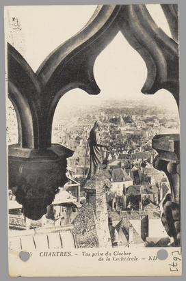 Chartres is, rondom de kathedraal, dood; de atmosfeer staat stil. Huizen met 15e Eeuwsche gevels, vol heiligenbeelden en nissen. - Morgen, god sta me bij, terug naar... Zutfen.