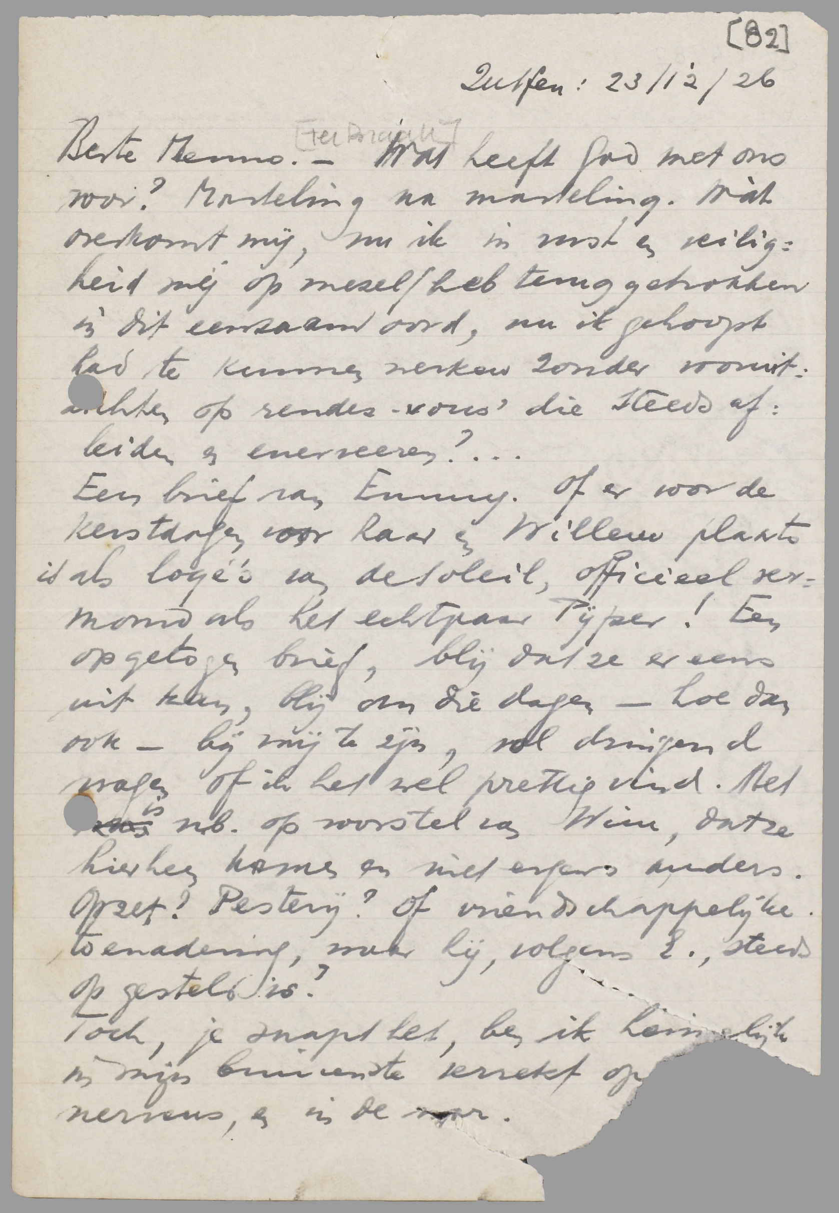 Toch, je snapt het, ben ik heimelijk in mijn binnenste verrekt [-] nerveus, en in de war. Ik schreef, om allereerst Emmy niet te desilluzioneeren, een hoera-brief. Maandag zullen ze wel weer weg gaan. Dan kom ik bij je.