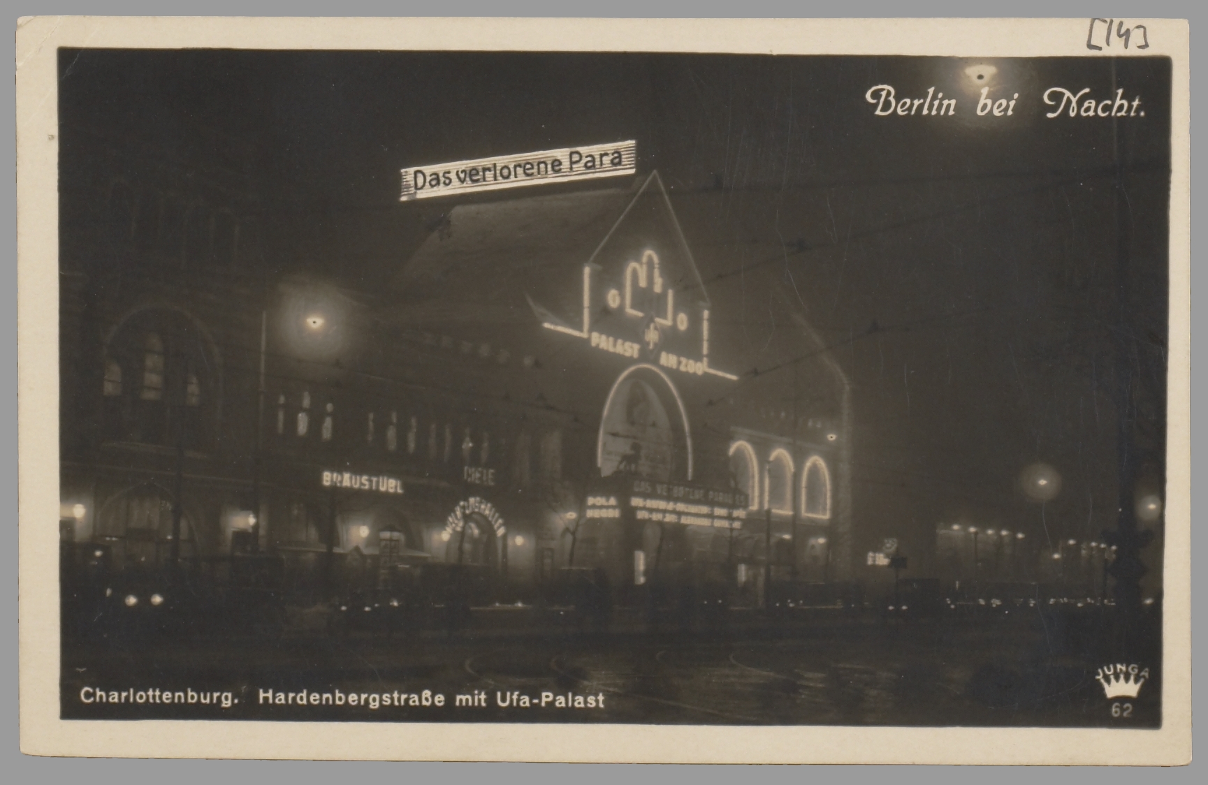 Hierbij een nachtelijke UFA-impressie (beeldvlak!) van Berlijn am Zoo. Mijn brief en ‘Gas’ aangekomen?