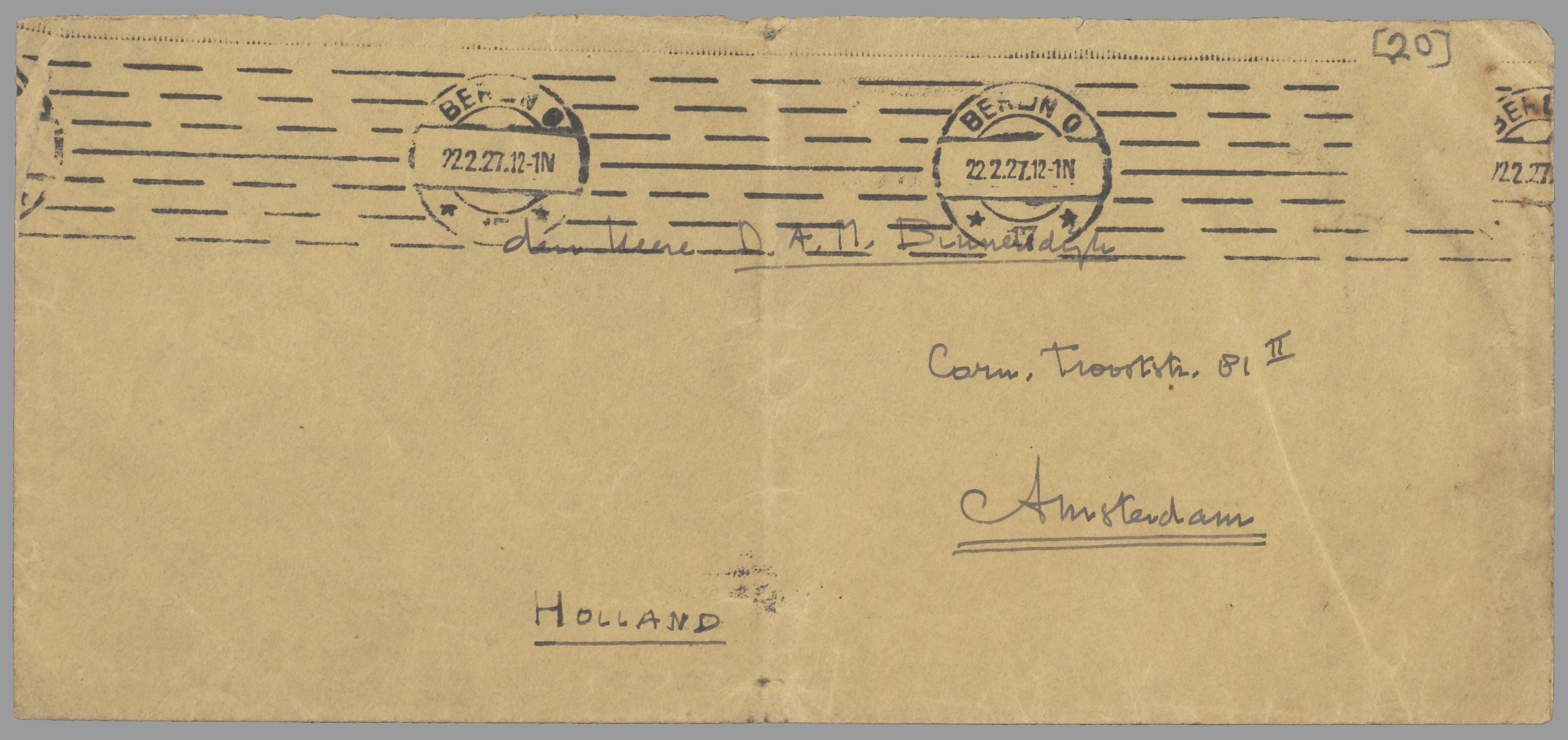 Ik moet 22 April in Arnhem een lezing afsteken over ‘Grondslagen der Filmaesthetiek’. Invitatie van Winkler, Franken en nog eenige lieden, die daar een filmconferentie organiseeren. Ook dat moet dus nog geprepareerd worden. Mijn stuk over genialiteit etc. vordert in mijn hoofd; helaas moet het zich daar steeds in een mésalliance begeven met Otto III, die dat niet te best verdraagt. Die promotie, waartoe ik na dit verblijf wel verplicht ben, ligt me als een baksteen.