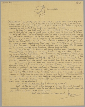 Ik kreeg nog een brief van Jo en heb nu eindelijk een gelegenheid gevonden haar te schrijven. Zij was de vorige week op reis, zoodat ik haar via To ter Haar een brief kan sturen. Ik hoop tenminste, dat hij goed is overgekomen, want kreeg nog geen bericht van ontvangst. Ik kan het soms haast niet houden van verlangen; dat zegt genoeg. Ja, wonderlijker dan de moffen is nog het menschelijk hart. Jouw ervaringen las ik met belangstelling; de uitslag van het Ella-probleem lijkt me (maar ik ben, zooals je weet, vooringenomen tegen haar) zeer wenschelijk, en was bovendien vooruit te voorspellen. Jullie zijn te zeer different, om ook maar zelfs dit contact lang te verduren. Altijd mijns bedunkens, hierover lullen we beter.