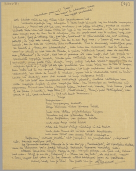 Waarom eigenlijk nog schrijven? Leven heeft tenminste nog een directe noodzakelijkheid. - Maar ook dit zal weer omslaan; we zullen schrijven, omdat we anders tenslotte toch weer niet leven. Alleen het hoe is me nu een raadsel. - Ik zal mijn best doen morgen over de An. Les te schrijven, om de copienood aan te vullen; hoop, dat het lukt. Geef je volkomen toe, dat het ‘Grabmal’ te journalistiek was, wat inkleeding betreft; ik had ook weinig veine, toen ik er aan bezig was. - Zooals jij over de Moskauers, ben ik over de russische film enthousiast. Dat is eenvoudig verbluffend goed. De laatste is ‘Iwan der Schreckliche’, ook weer een evenement. Dat ik hierover voor I 10 schrijf en niet voor de Bladen is zuiver historisch toeval door de aanteek. over ‘Potemkin’; ik vind, dat het in zooverre iets voor heeft, dat het papier reproducties mogelijk maakt. Verder gaan natuurlijk de Bl. bij me voor; als, onverhoopt, mijn groote stuk slaagt, krijgen jullie het, dat spreekt vanzelf. Nu de uitgever goed is, heeft het ook geen practischen zin naar Dirk van de Stem te loopen. Over Kelk heb ik me royaal kromgelachen; het heeft weliswaar niet veel met de verhouding van leven en kunst te maken, maar het is verduiveld mooi en herinnerde me levendig aan dien avond in mijn viesgroene suite.