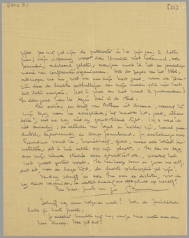 Tweedens: je weet zeker al, dat de bioscoopconferentie is uitgesteld, dat wil waarschijnlijk zeggen, afgesteld. De heeren zonden mij één dag te voren een telegram, zoodat ik mijnerzijds zoo vrij zal zijn de publicatie in I 10 zijn gang te laten gaan; mijn inspanning wordt dan tenminste niet heelemaal, ook pecuniair, onbeloond gelaten; overigens vind ik het een zonderlinge manier van conferenties organiseeren. Ook de pegels van het Hbl. ontsnappen me nu, wat me aan mijn hart gaat, waar de financiën door de laatste onthullingen van mijn moeder zich niet heel best laten aanzien. Het is zaak om met vaart te promoveeren! In ieder geval kom ik begin Mei in de stad.