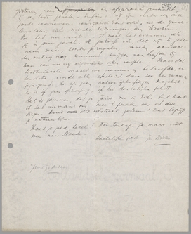 Vroeger is Kuiper met Jenny G. getrouwd geweest (hadden 2 kinderen). Toen is zij met P. er van door gegaan, van haar kant grootendeels berekening. Toen heeft zij dit jaar Kuiper bij het gezelschap van P. gebracht en (omdat zij van K. scheen te houden) er is weer een verhouding ontstaan tusschen hen, die Pisuisse tot het uiterste razend heeft gemaakt, zoodat hij hem heeft ontslagen. De wanhoop en de geldnood deden bij K. de rest en ziedaar hoe deze oplossing de eenige bleek te zijn en dit ook ongetwijfeld is. Zoowel K. als P. schijnen geen wezenlijke uitkomst te hebben gezien: zij hielden beiden van J.G., die weer op haar beurt (en manier!) van hen hield.