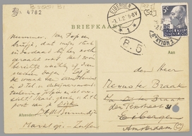Wanneer ga jij weer stadwaarts? Henny Marsman, die weer een beetje opgeknapt is, wilde ons graag op doorreis naar A'dam treffen in Amersfoort of Utrecht. Schikt het jou om a.s. Vrijdag te gaan; dan kunnen wij bijv. 's middags in A'foort blijven en 's avonds verder sporen. Tegelijkertijd ontmoeten wij dan Dirk van de Stem.