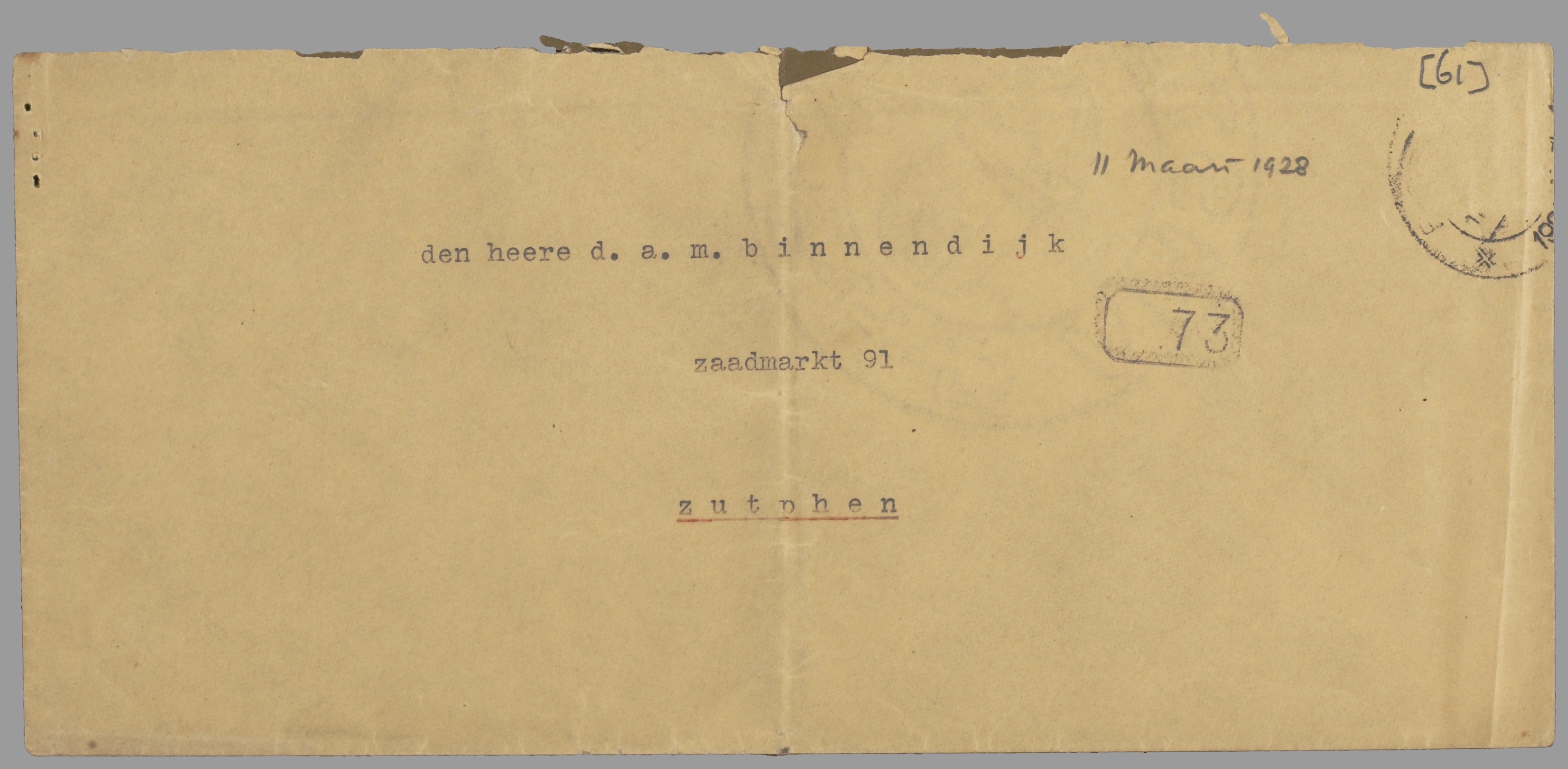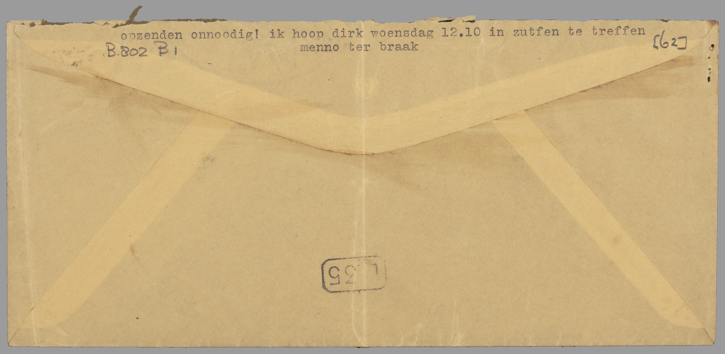 Het spreekt vanzelf, dat ik niets aan wie ook laat doorschemeren! Daar kun je natuurlijk van opaan! Het is mijn plan a.s. Woensdag (ook met het oog op bovenstaande!) naar de stad terug te gaan; laten we dan afspreken, dat ik Woensdag van trein 12.10 tot ’s avonds in Zutfen overblijf. Zonder tegenbericht van jouw kant reken ik er dus op Woensdag je aan den trein te zien! We kunnen den middag dan aan de dialoog wijden.