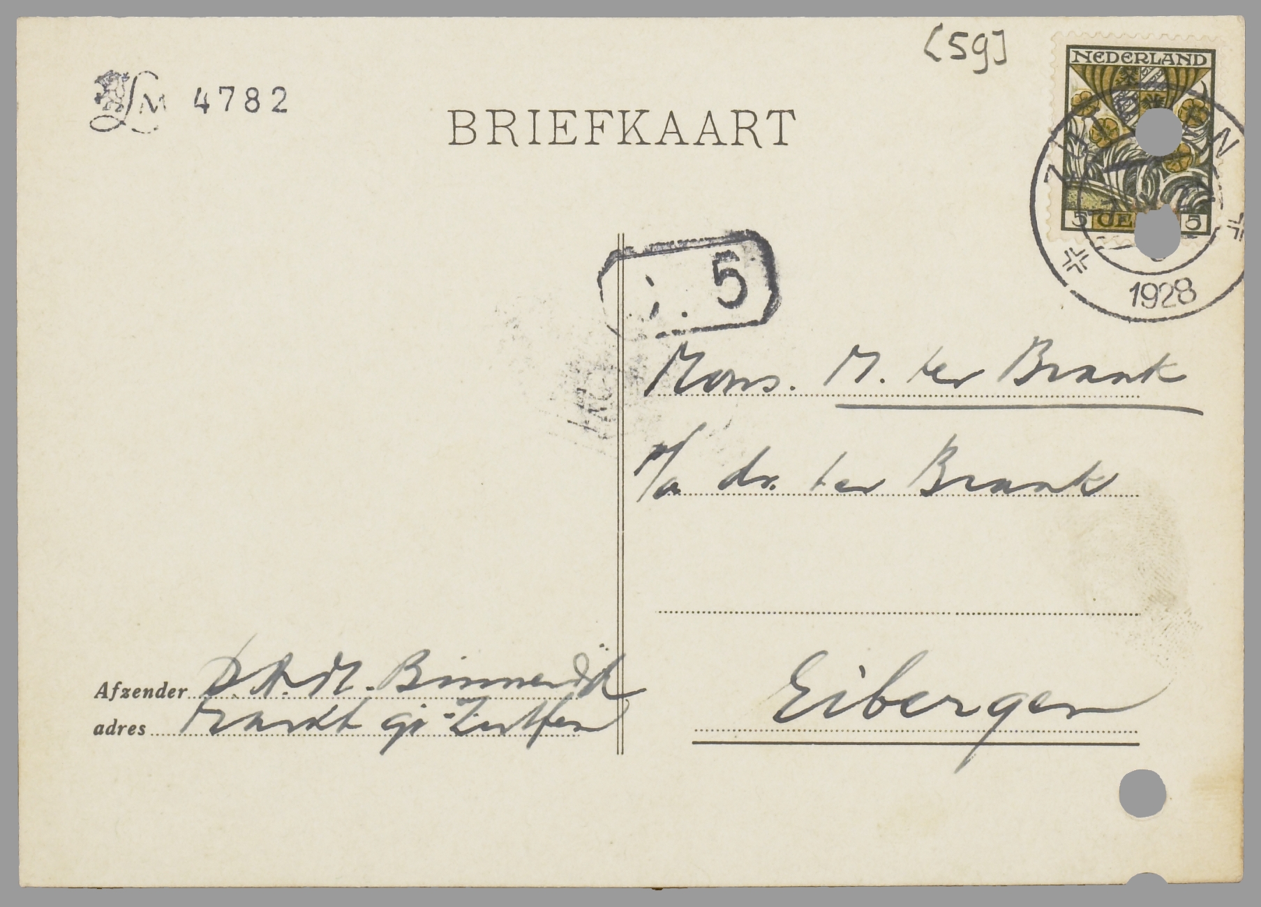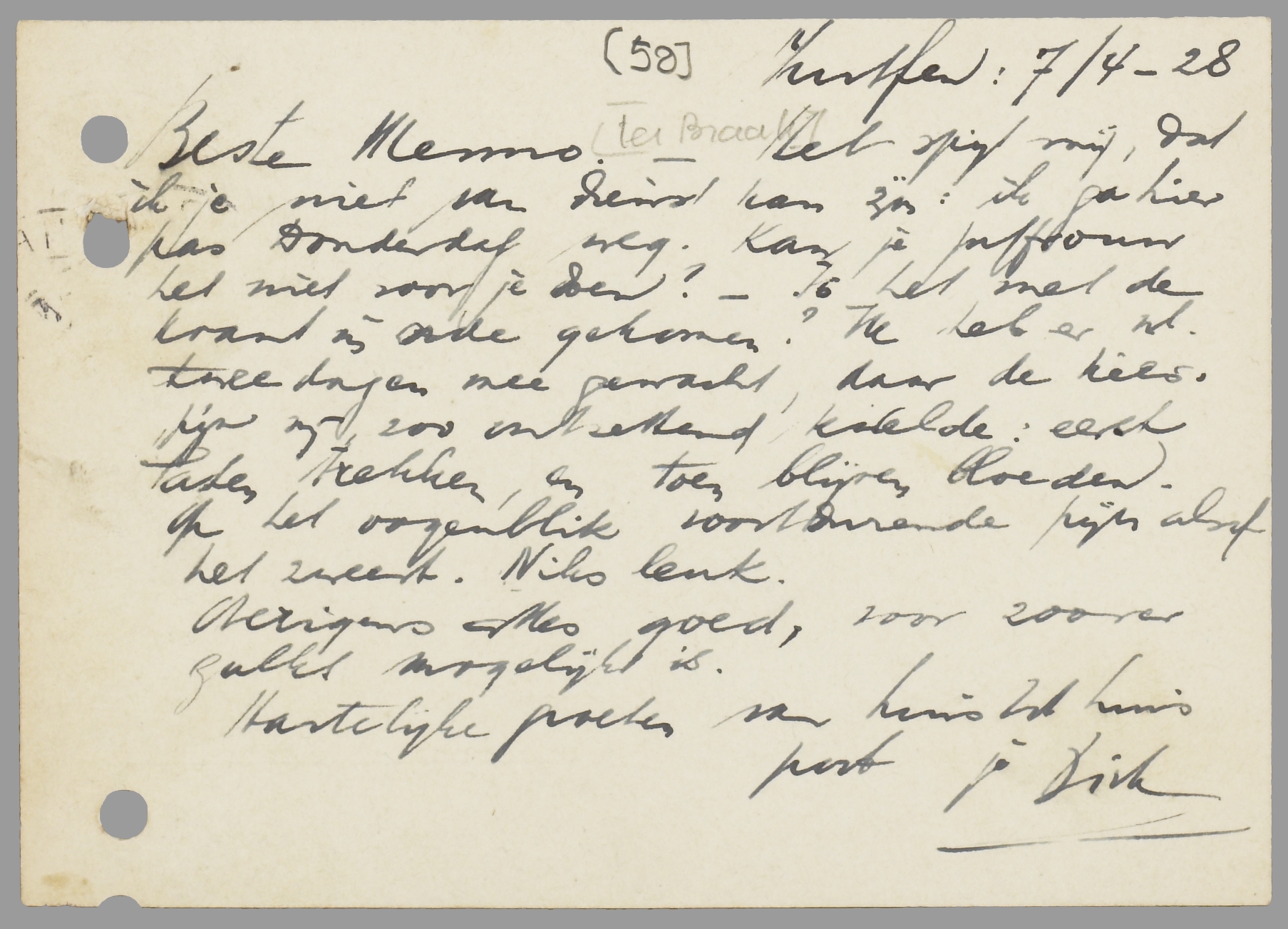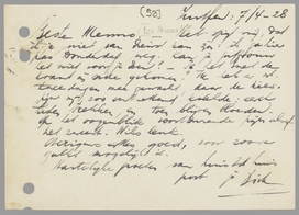 Het spijt mij, dat ik je niet van dienst kan zijn: ik ga hier pas Donderdag weg. Kan je juffrouw het niet voor je doen? - Is het met de krant in orde gekomen? Ik heb er n.l. twee dagen mee gewacht, daar de kiespijn mij zoo ontzettend kwelde: eerst laten trekken, en toen blijven bloeden. Op het oogenblik voortdurende pijn alsof het zweert. Niks leuk.