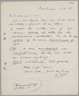 Wil je het volgende doen met beide lijsten, hier ingesloten (gemerkt C. en C.bis): C. achter Br. invullen ‘voor’ of ‘tegen’. Daarna: optreden als teller; dus: de eindconclusie vaststellen. Van hen die niet ‘gekozen’ zijn de namen doorschrappen op lijst C.bis., en deze onmiddellijk aan Strengholt <Heerengracht 390. A'dam-C.> zenden die dan weer verder voor invitatie zorgdraagt.