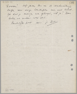 Hoe gaat het toch? Waarom schrijf je nooit? Te druk? Hoe is het met Jo? - De filmliga-matinee was een sof, hoorde en las ik. Enny en ik waren in Zutfen Ztd en Zondag. Verder weinig nieuws; alleen: ik blijf in de baan gehandhaafd. VdH. gaat geen anderen meer ‘hooren’. Wij gaan dus nu de voorbereidingen treffen voor onze Londensche reis met Kerst. Zie dat je morgen even oploopt, wil je? Dan lullen we meteen weer eens.
