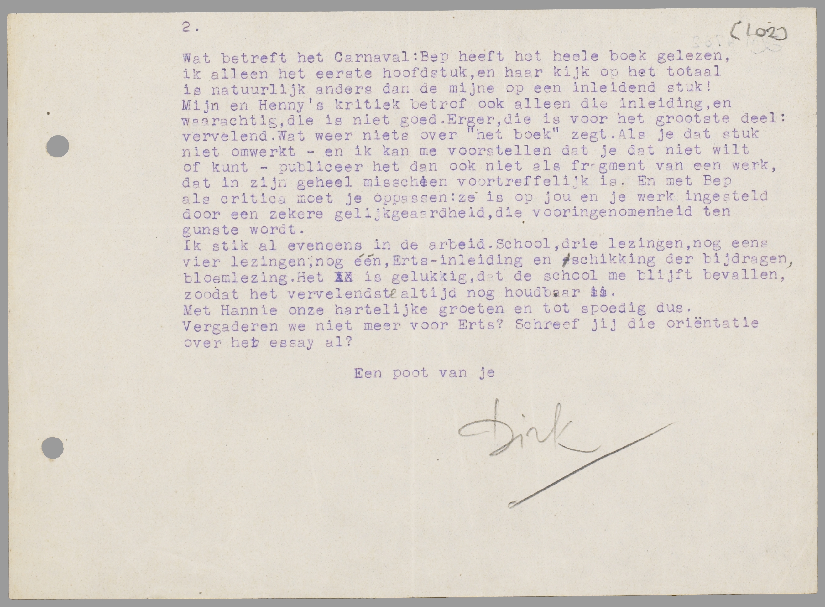 Met Hannie onze hartelijke groeten en tot spoedig dus. Vergaderen we niet meer voor Erts? Schreef jij die oriëntatie over het essay al?