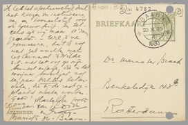 Hoe staat het met Balans? Van Scholte-vâer hoor ik nu niets meer. Ik geloof overigens, dat je afwezigheid dien Zondag meer jouw dan zijn schuld is geweest. And what about Mr Bouws? Bij het afscheid, dien avond, zag ik er nog niet veel licht in.