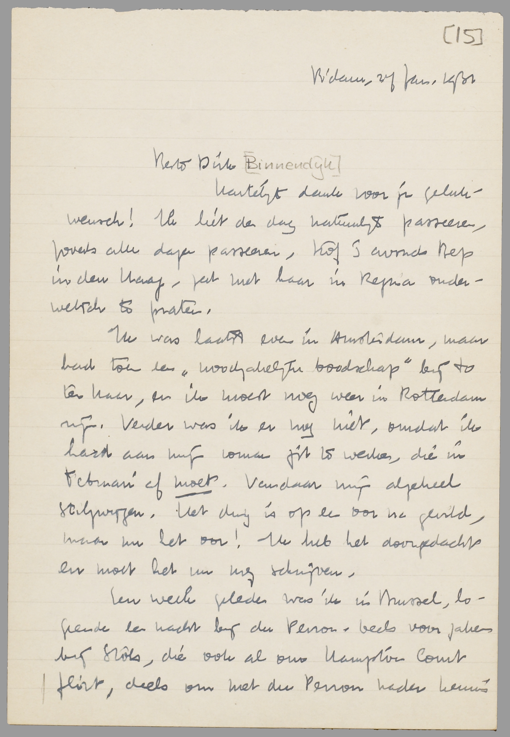 Hartelijk dank voor je gelukwensch! Ik liet den dag natuurlijk passeeren, zooals alle dagen passeeren, trof 's avonds Bep in den Haag, zat met haar in Regina ouderwets te praten.