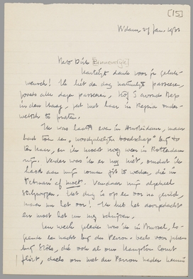 Stuur me vooral doorslag van je stuk. Niet voor repliek, want onze standpunten kunnen m.i. beter voor zichzelf spreken. Deze manier van behandelen in de V.Bl. lijkt me ook de eenig juiste. Intusschen: zeer benieuwd!