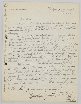 Het is jammer maar het is niet anders. Heeft Nypels bij Versluys geen resultaat, dan zou ik het persoonlijk nog eens, namens Mevr. D.M., bij Versluys kunnen probeeren, hoewel ik geen persona grata bij hem ben. - Wat ons betreft, wij moeten het resultaat der onderhandelingen afwachten: het zou dwaas zijn, werk te doen dat later kan blijken vergeefs gedaan te zijn.