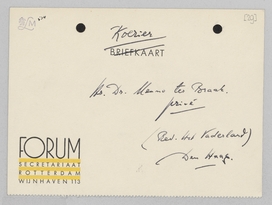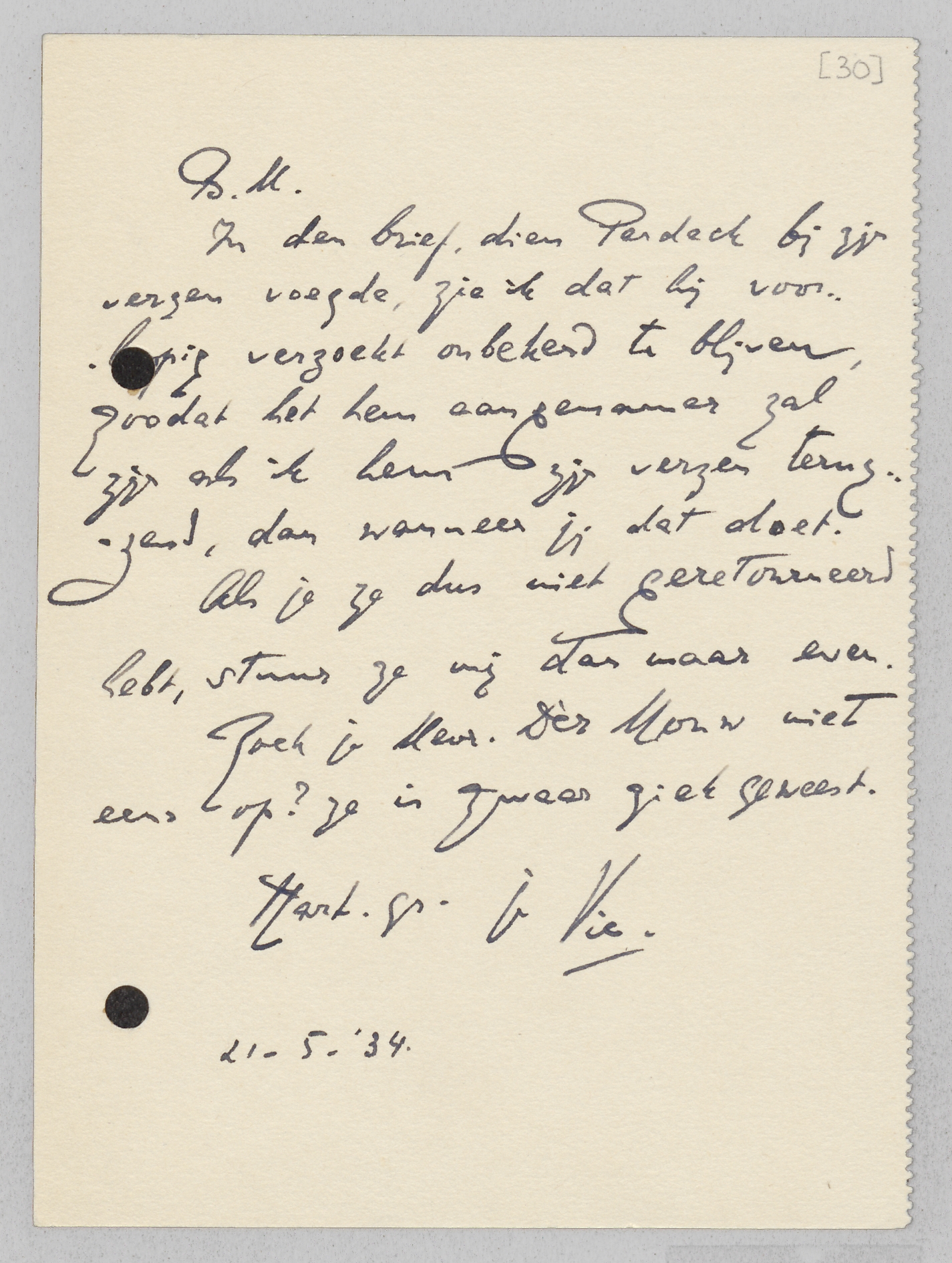 In den brief, dien Pardeck bij zijn verzen voegde, zie ik dat hij voorlopig verzoekt onbekend te blijven, zoodat het hem aangenamer zal zijn als ik hem zijn verzen terugzend, dan wanneer jij dat doet.