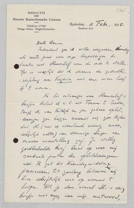 Na het ontvangen van Slauerhoffs briefje besloot ik n.l. uit Forum te treden, tenzij ik van Vestdijk en jou zekere ophelderingen zou krijgen waaruit mij zou blijken dat Slauerhoff (wat ik voorhands weinig waarschijnlijk achtte) van sommige dingen een onware voorstelling gaf. Je stellig goedbedoelde brief bevat op voor mij cardinale punten die ophelderingen niet. Ik zal dit woensdagmiddag preciseeren, tot zoolang behoeven wij hier schriftelijk niet op vooruit te loopen. Wil je dan vooral Slauerhoffs vorig briefje met copy van mijn antwoord, dat ik verzocht na circulatie spoedig retour te zenden maar nog niet terug mocht ontvangen, meenemen?