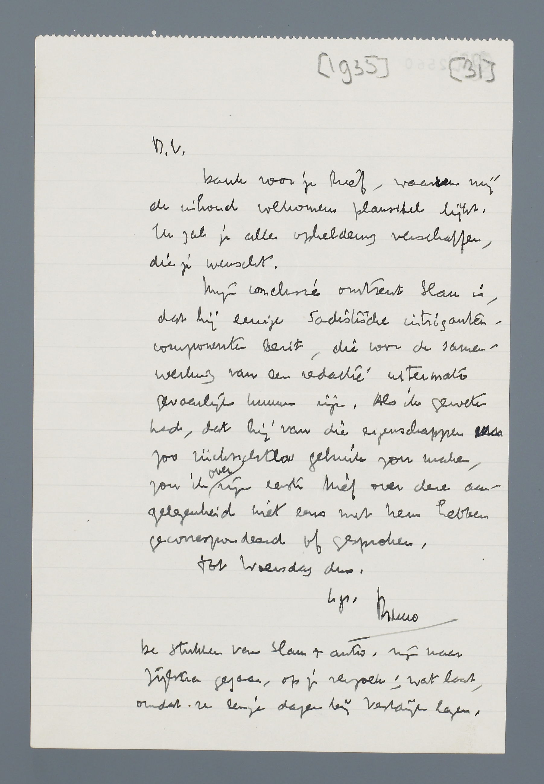 Mijn conclusie omtrent Slau is, dat hij eenige sadistische intrigantencomponenten bezit, die voor de samenwerking van een redactie uitermate gevaarlijk kunnen zijn. Als ik geweten had, dat hij van die eigenschappen zoo rücksichtlos gebruik zou maken, zou ik over zijn eerste brief over deze aangelegenheid niet eens met hem hebben gecorrespondeerd of gesproken.