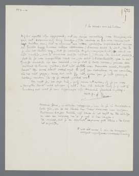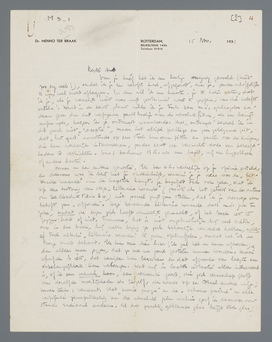 Voor je brief heb ik een beetje wroeging gevoeld (niet zoo erg veel!), omdat ik je een belofte had ‘afgeperst’, die je, zonder onhoffelijk te zijn, wel moest afleggen. En dus wil ik me haasten, je te laten weten, dat ik je, als je werkelijk niets van mijn geesteskind weet te zeggen, van die belofte ontsla! Want in de eerste plaats wilde ik je toch een m.i. geslaagder cadeau geven dan dat verfijnde prutsboekje over de absolute film, als een bewijs mijnerzijds, hoezeer ik je ontvangst waardeerde. Met ‘ontvangst’ bedoel ik in dit geval niet ‘receptie’, maar het altijd prettige en zeer zeldzame feit, dat ‘het gast’ aanstonds op een stoel kan gaan zitten en praten over de dingen, die hem werkelijk interesseeren, zonder eerst de vereischte code van beleefdheden te verrichten. Dus: beschouw H.C. als een bezit, vrij van hypotheek of andere lasten.