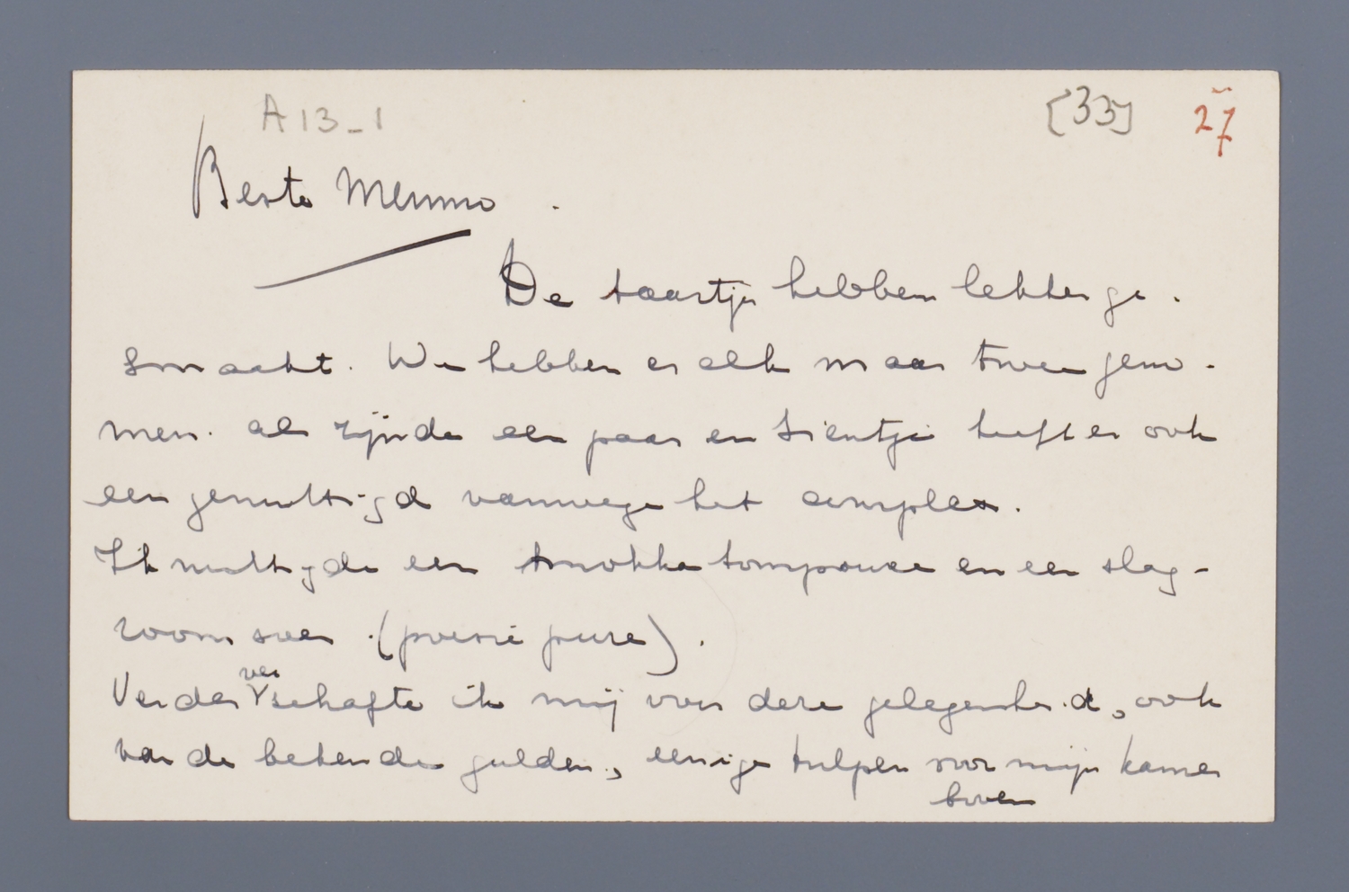 Verder verschafte ik mij voor deze gelegenheid, ook van de bekende gulden, eenige tulpen voor mijn kamer boven. Ik dacht, je bent maar één keer 30 dus neem ik het ervan. Je ziet dus, dat we je hebben gedacht met eere!