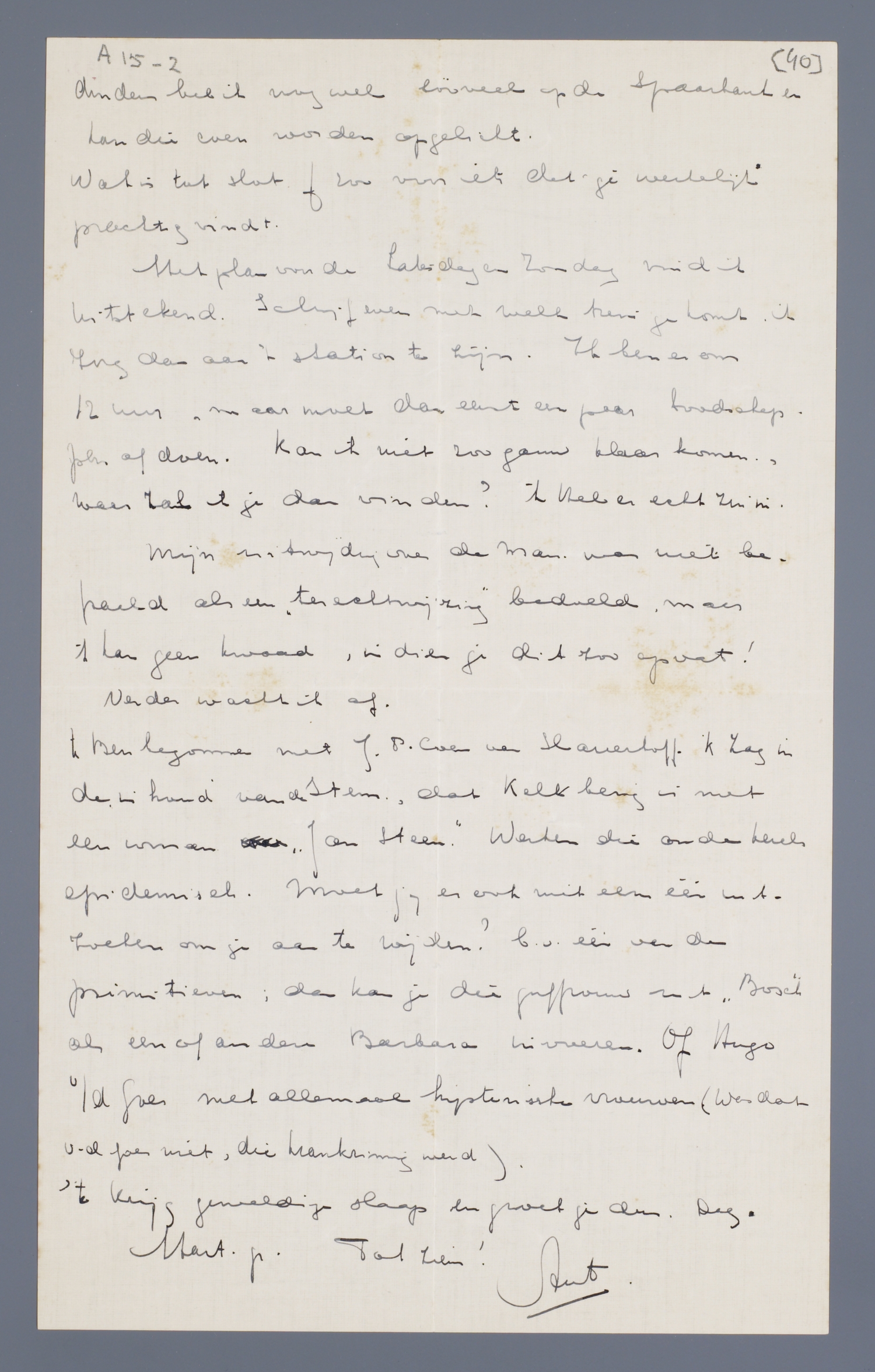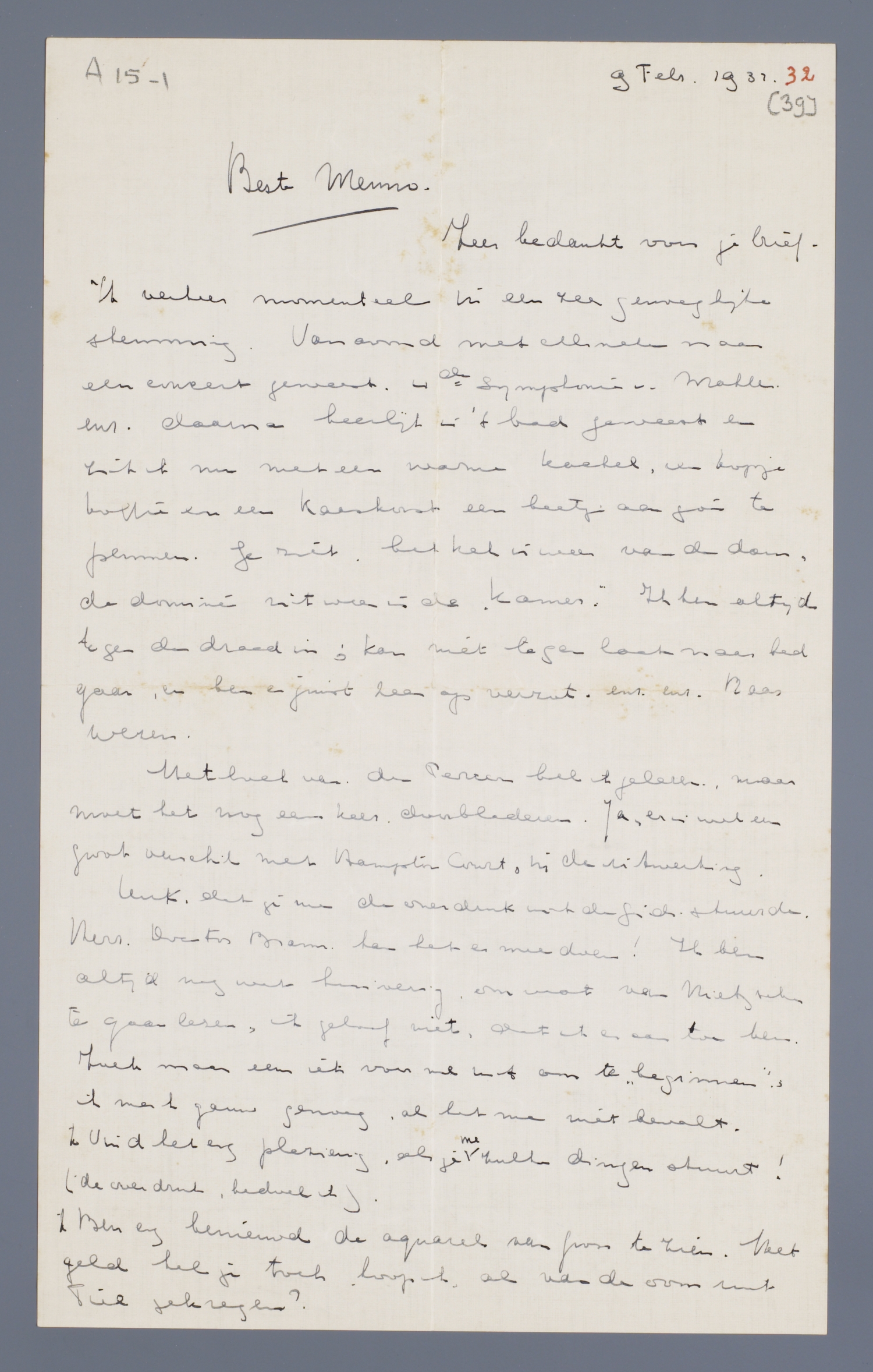 Leuk, dat je me de overdruk uit de Gids stuurde. Herr. Doctor Brann kan het er mee doen! Ik ben altijd nog wat huiverig om wat van Nietzsche te gaan lezen, ik geloof niet, dat ik er aan toe ben. Zoek maar eens iets voor me uit om te ‘beginnen’, ik merk gauw genoeg, als het me niet bevalt. 'k Vind het erg plezierig, als je me zulke dingen stuurt! (de overdruk bedoel ik).