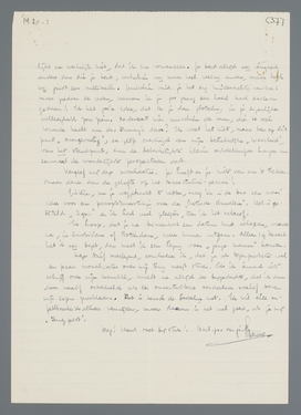 Deze brief als een schriftelijke herinnering aan je plechtige belofte, afgelegd op het houten perron van het Maasstation. Ik vond het werkelijk zoo buitengewoon verstandig van je, dat je tot het besluit kwam uit Zutfen weg te gaan, dat ik niet nalaten kan nog heden per brief te applaudisseeren. Als ik n.l. een karakteristiek van je zou willen opstellen (maar ik wil dat niet, tenminste niet systematisch, daarvoor sta ik niet objectief genoeg tegenover je), zou ik daarin o.a. een plaats moeten inruimen voor je onzekerheid op sommige punten, die zich dan uit in je beroemde ‘recalcitrantie’. Ik heb voortdurend het gevoel, dat je daardoor niet half ontplooit, op sommige punten alweer, wat je zou kunnen ontplooien, als je op die punten volkomen zeker was. Dat leid ik af uit de andere punten, waarop je veel ‘brillanter’ bent dan de gemiddelde vrouw, die brillantine als het hoogste criterium van mannelijke intelligentie beschouwt, zij het in allerlei variaties, en zich daarop blind staart. Ik geloof, dat je in alle opzichten ‘brillant’ zou kunnen zijn, als je zekerder van je zelf was...