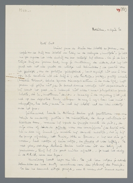 Vanmiddag komt neger van Lier. Ik zal hem volgens je advies behandelen en hem ernstig waarschuwen voor den philosoof der broekjes. Ik ben nu eenmaal altijd geneigd, aan te nemen, dat iemand anders op zeventienjarige leeftijd allang heeft begrepen, wat ik, met dertig jaar, heb begrepen (of gevoeld, of hoe je het noemen wilt). Dat zal wel heelemaal onjuist zijn; maar een feit is, dat van Lier niet zoo vervalscht is als ik op zijn jaren. Hij heeft misschien nog maar een heel beperkt blik-je, maar dat is ook vrij zuiver. We zullen zien; in ieder geval zal ik hem in De Bijenkorf te eten geven.