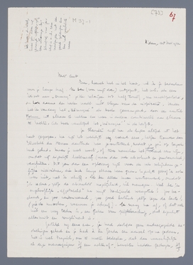 Je theorieën zijn me als bijna altijd uit het hart gegrepen. We zijn het werkelijk erg roerend eens, hetgeen trouwens door Elisabeth du Perron aanstonds was geconstateerd, nadat ze jou op bezoek had gehad. Maar je weet nooit, of twee menschen het soms roerend eens zijn, omdat zij eigenlijk heelemaal (maar dan ook absoluut en fundamenteel) verschillen. Dit zou dan een oplossing zijn voor de vele schijnbaar gelijke individuen, die toch langs elkaar heen gaan. Eigenlijk geloof ik ook weer niet, wat ik schrijf. Ik ben alleen maar wantrouwend, omdat ik iedere, zelfs de absurdste mogelijkheid, wil overwegen. Wel ben ik ongelooflijk ‘afgetakeld’ na mijn Berlijnsche waagstuk! Zoo bedaard, en zoo raisonneerend, zoo goed bestand zelfs tegen de lente! (zie de musschen, waarover je schreef). Ik vraag me af, of dat ook niet een veeg teeken is, een teeken van zelfbeheersching, dat eigenlijk allerminst een compliment is.