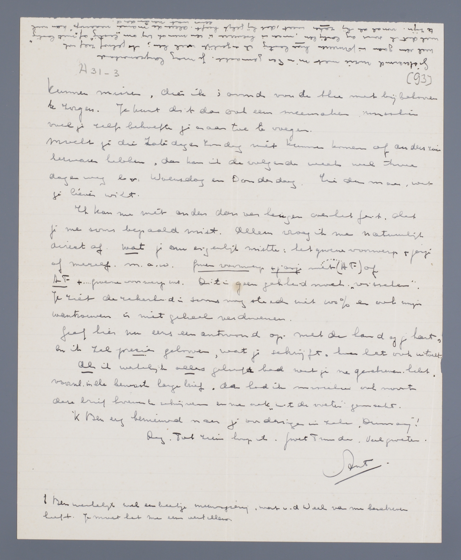 Als ik werkelijk alles geloofd had wat je me geschreven hebt, voornl. in de bewuste lange brief, dan had ik misschien ook nooit deze brief hoeven te schrijven en me ook ‘uit de voeten’ gemaakt.