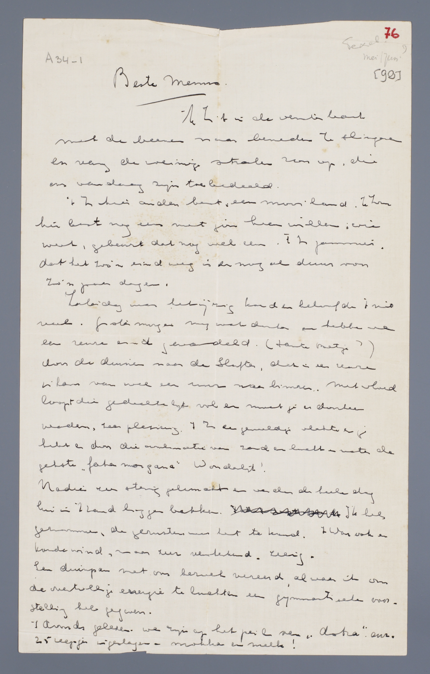 Nadien zeer stevig geluncht en verder de heele dag lui in 't Zand liggen bakken. Ik heb gezwommen, de gezusters was het te koud. 't Was ook een koude wind, maar zeer versterkend, zeeig [?].