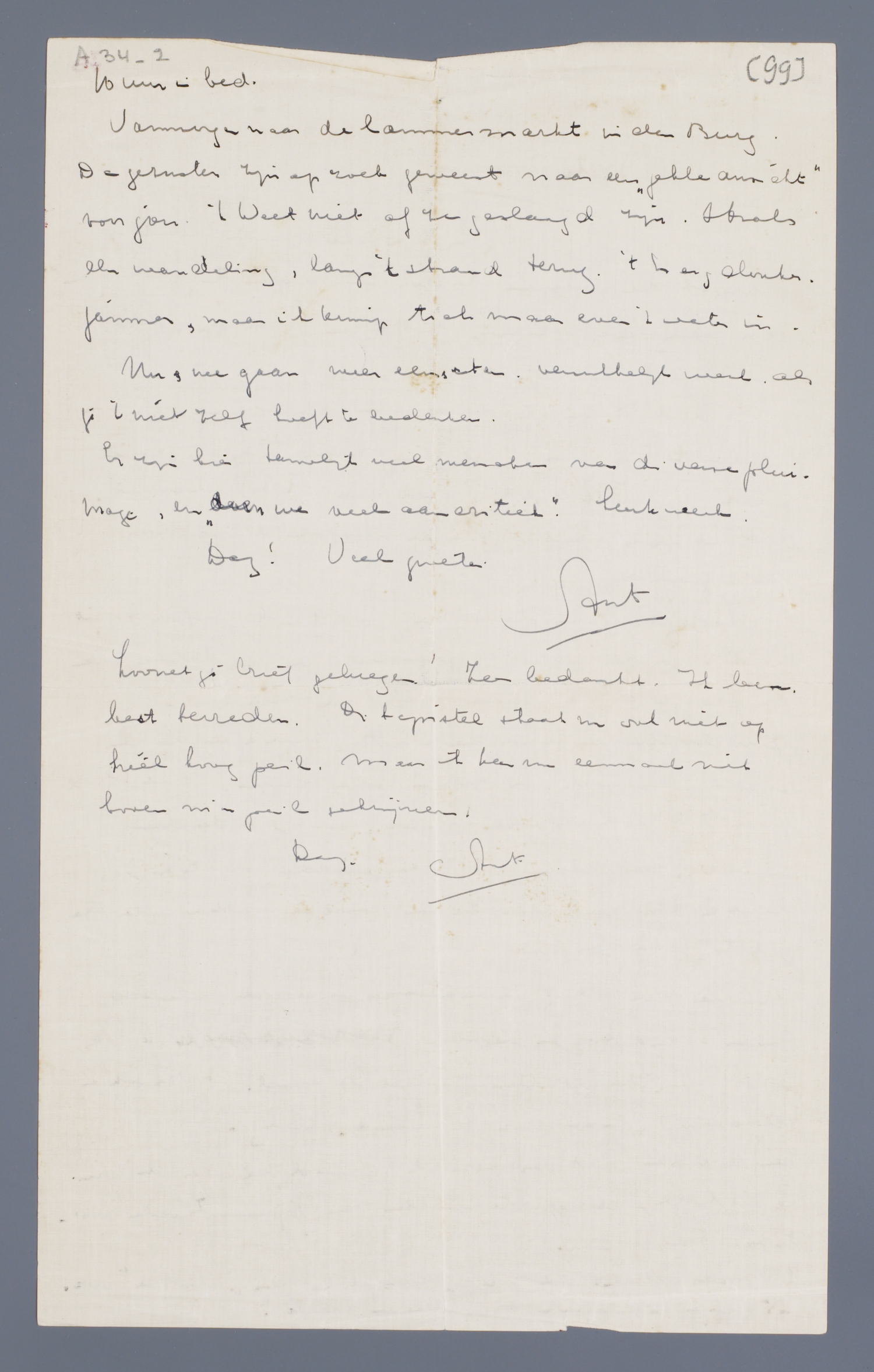 Zoonet je brief gekregen! Zeer bedankt. Ik ben best tevreden. Dit epistel staat nu ook niet op héél hoog peil. Maar 'k kan nu eenmaal niet boven m'n peil schrijven.
