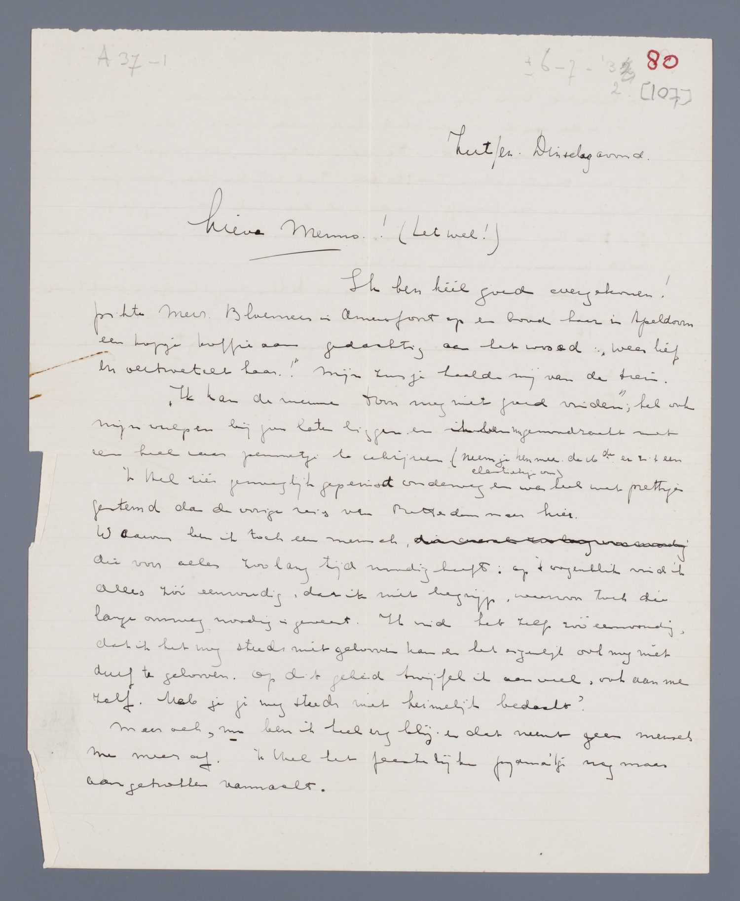 ‘Ik kan de nieuwe toon nog niet goed vinden’; heb ook mijn vulpen bij jou laten liggen en ik ben nu genoodzaakt met een heel raar pennetje te schrijven (neem je hem mee de 16de er zit een elastiekje om).