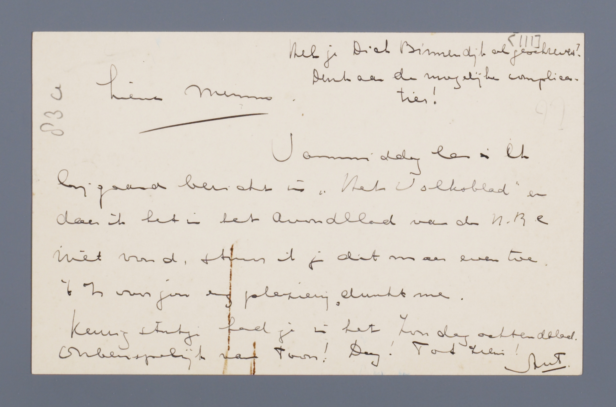 Vanmiddag las ik bijgaand bericht in ‘Het Volksblad’ en daar ik het in het Avondblad van de N.R.C. niet vond, stuur ik je dit maar even toe. 't Is voor jou erg plezierig, dunkt me.
