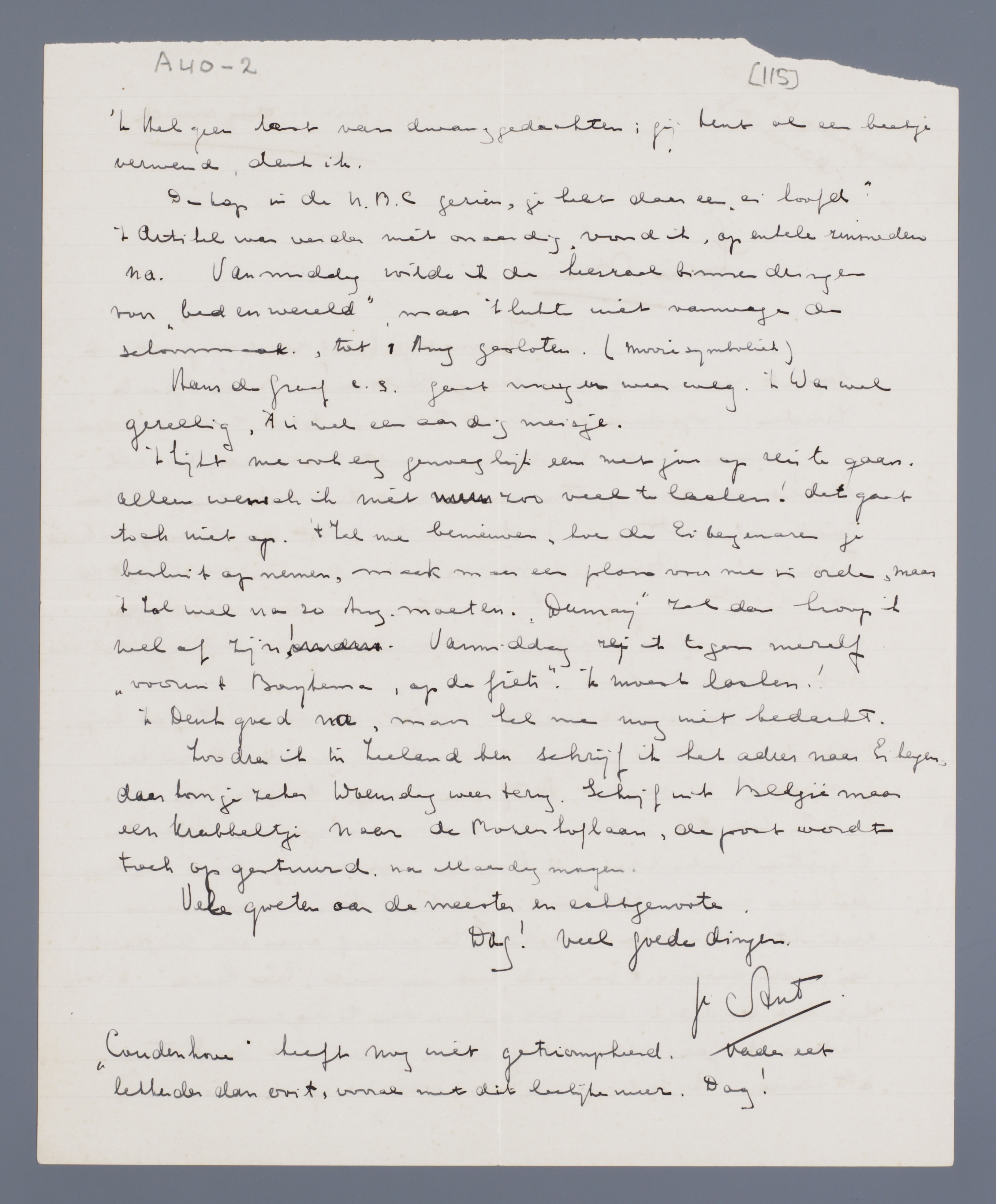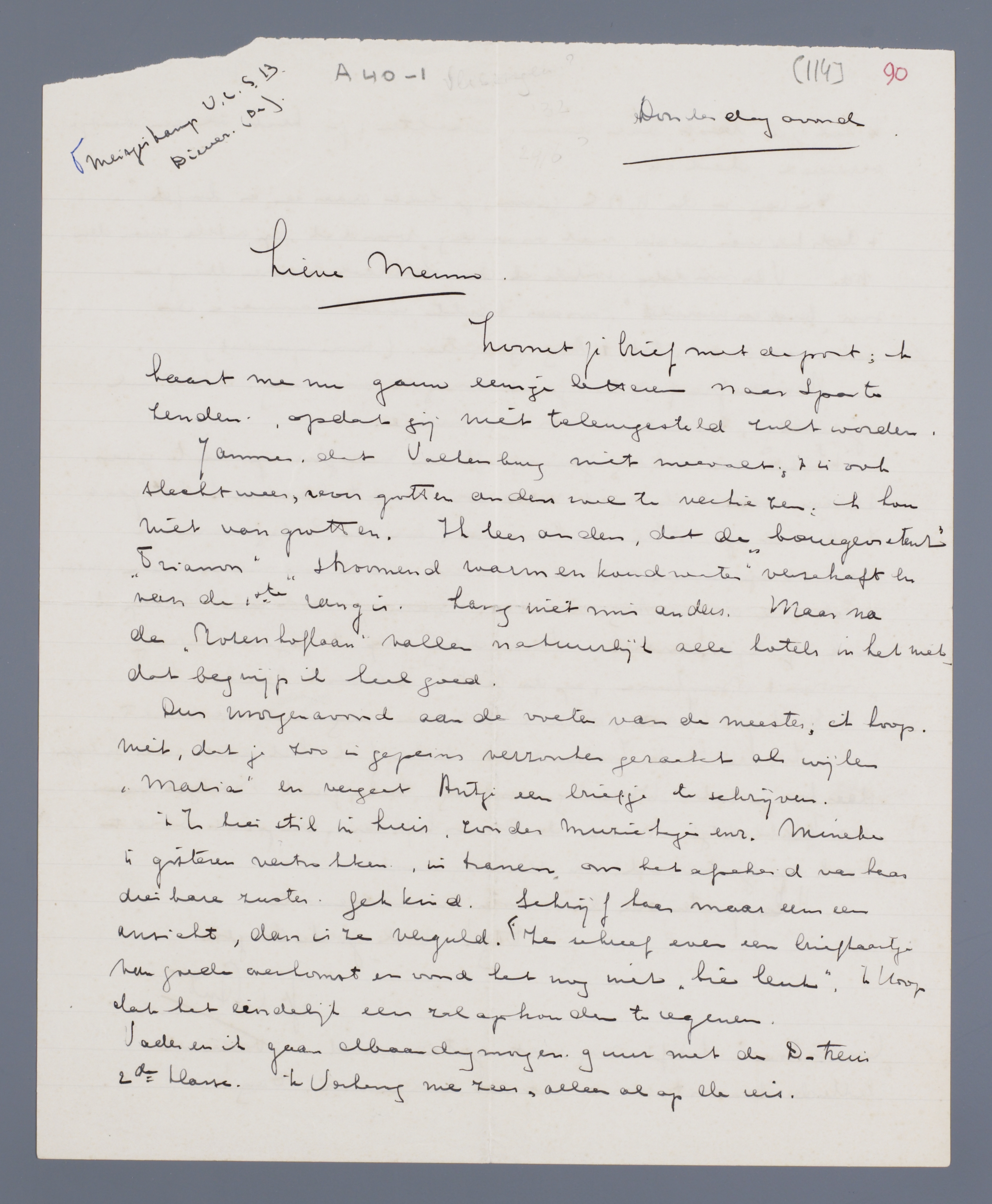 Dus morgenavond aan de voeten van de meester; ik hoop niet, dat je zoo in gepeins verzonken geraakt als wijlen ‘Maria’ en vergeet Antje een briefje te schrijven.