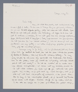 Vanmorgen kreeg ik je brief, die ik glimlachend (let wel, humor!) gelezen heb. Je verstaat de kunst, om met een paar woorden een persoon of toestand te teekenen, voor mij tenminste volkomen volledig. Ik mag graag schrijven op reis, maar dan gewoonlijk veel briefkaarten. Tot brieven kom ik ook zelden, maar jij maakt een uitzondering natuurlijk. Klinkt dat al niet heel aardig? – Ik heb de oudelui één en ander van mijn plannen overgeheveld; zij waren niet erg ontsteld, omdat ik me niet wilde verloven, en verder zijn ze jou natuurlijk heel goed gezind. Mij minder, en je zult eerst nog moeten bewijzen, dat je je door mij niet laat oppeuzelen of anderszins in den grond boren.