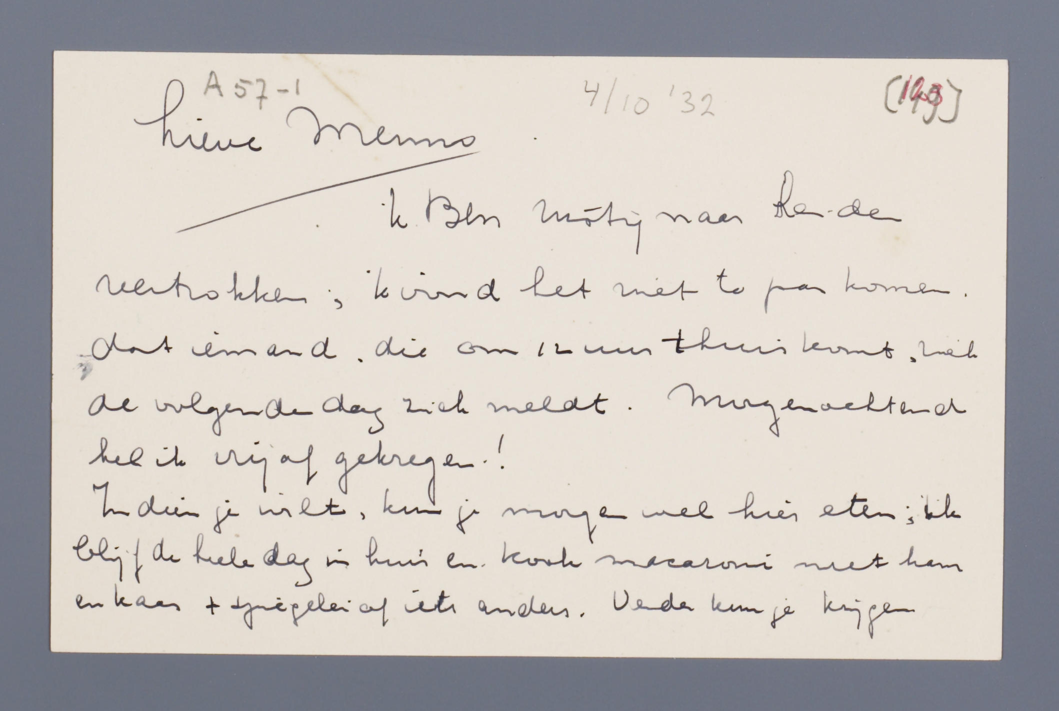 'k Ben rustig naar Leiden vertrokken; 'k vind het niet te pas komen dat iemand, die om 12 uur thuis komt, zich de volgende dag ziek meldt. Morgenochtend heb ik vrijaf gekregen!