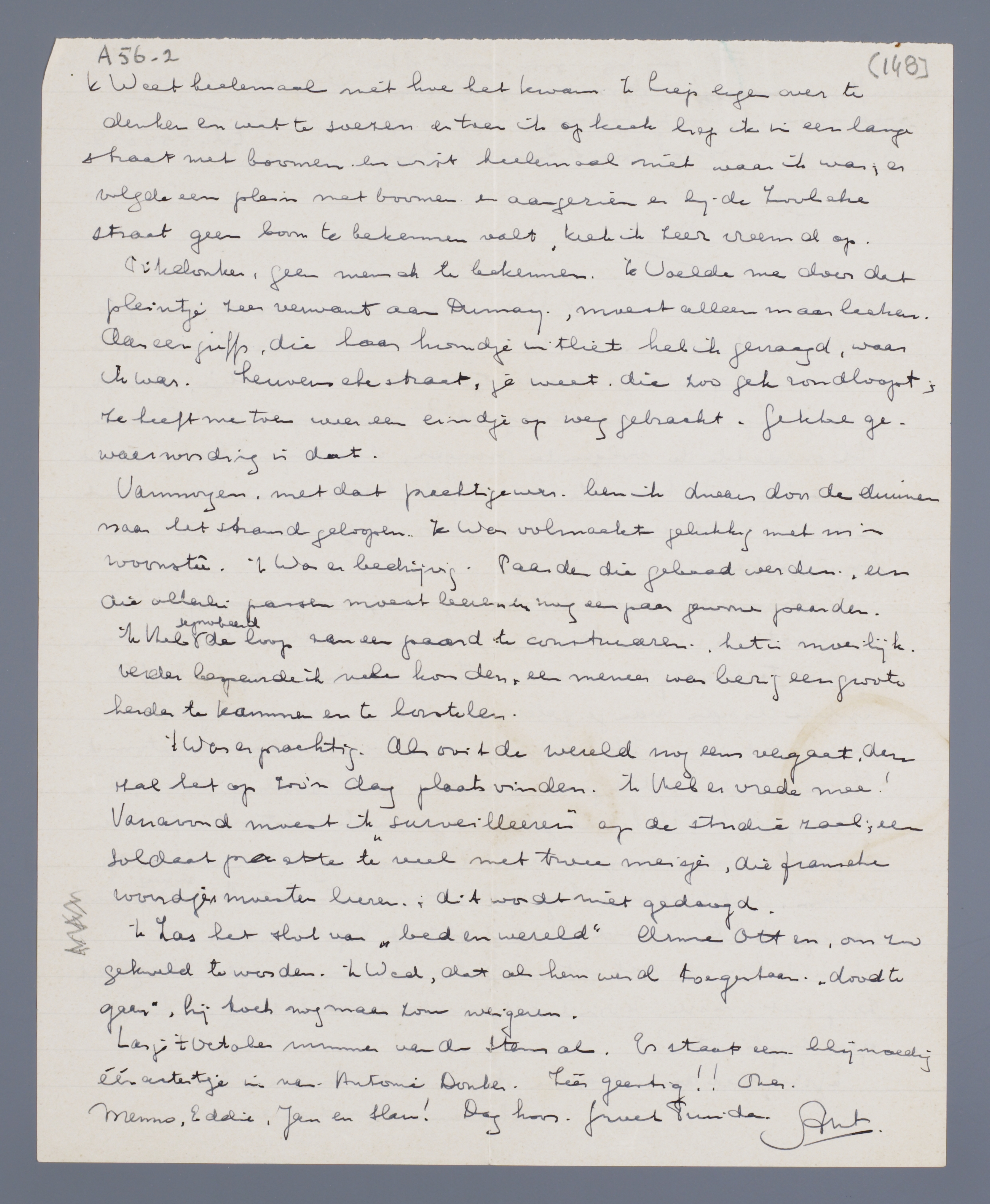 Zal je goed op je-zelf passen? Ik kom dus Woensdag 4 uur of tusschen 4 en 5. Morgen ga ik naar Zutfen. Schrijf nog even of je ‘goed’ bent. Dag hoor! Ant