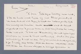 Vanmiddag zeer goed gedineerd à f 1. aspergesoep. Verder heb ik weinig beleefd, eenige keeren nat geregend. Bah, wat een weer. Morgenavond om 5 uur klaar. 'k Ga dan eerst wat boodschappen in de Bijenkorf.