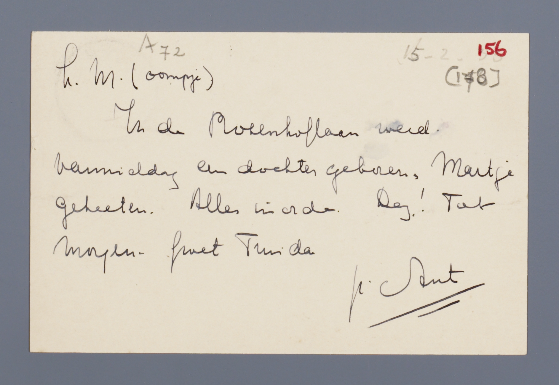 In de Rozenhoflaan werd vanmiddag een dochter geboren. Martje geheeten. Alles in orde.