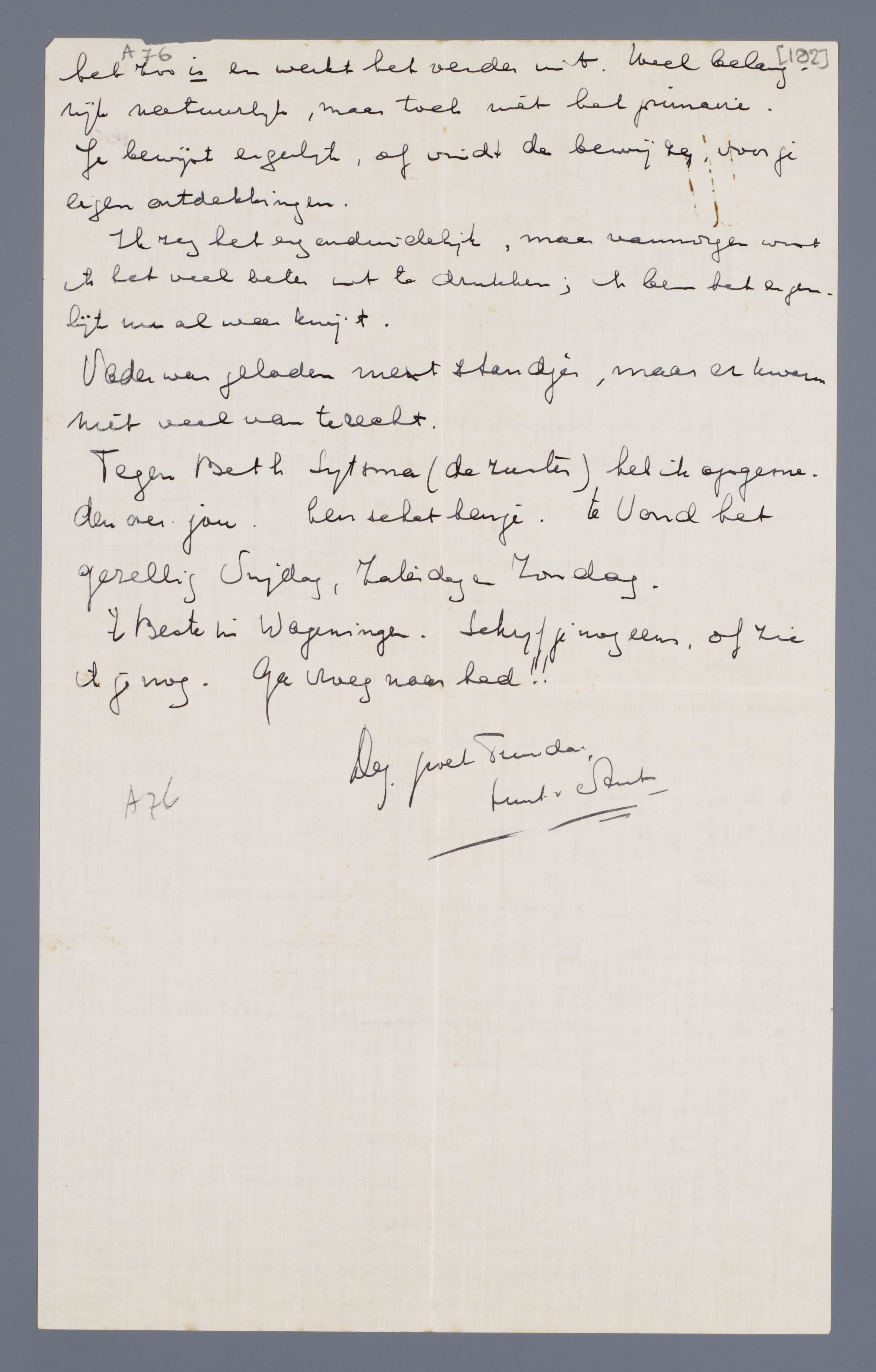 't Beste in Wageningen. Schrijf je nog eens, of zie ik je nog. Ga vroeg naar bed!!