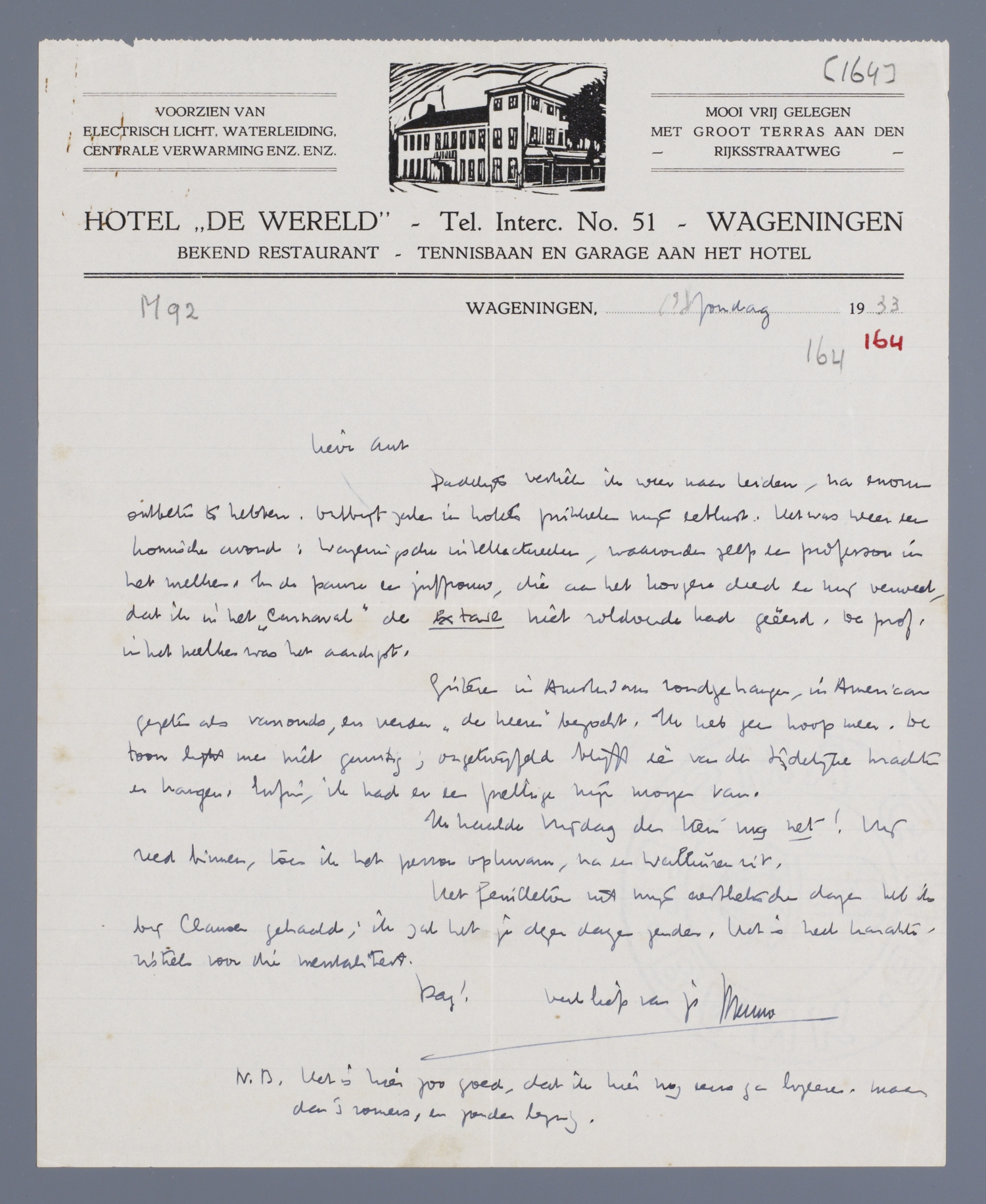 N.B. Het is hier zoo goed, dat ik hier nog eens ga logeeren. Maar dan 's zomers, en zonder lezing.