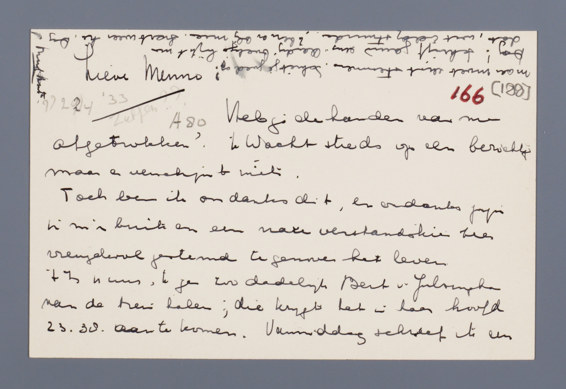 Vandaag is Oom Nico zeker op bezoek. Schrijf eens hoe dat afliep. Truida vertelde het. We hadden een mooie reis, samen met Hildbrandt Boschma, debat over het christendom! + neef en nicht van jullie. 'k Ben blij, dat je de volgende week weer in Rotterdam huist, 'k verlang wel eens een beetje, soms. 'k Kom Woensdag wel even maar moet eerst stemmen. Schiet je goed op!