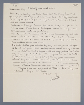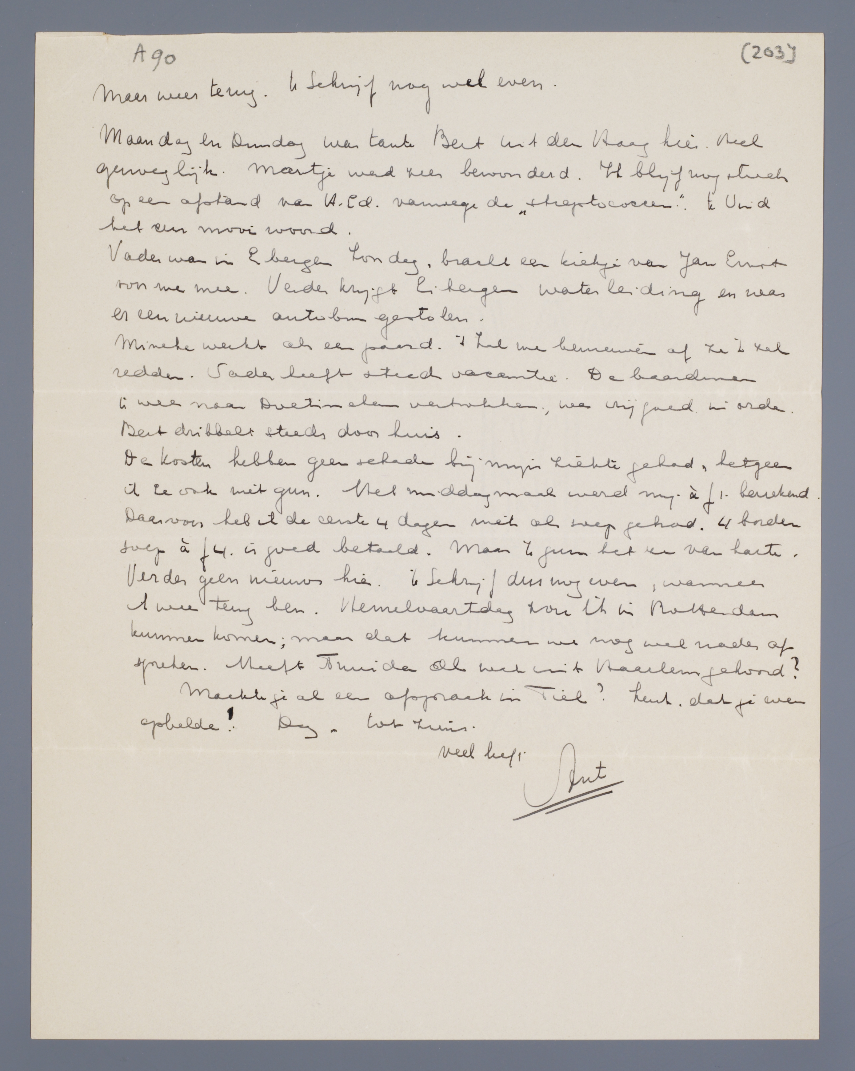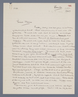 Verder geen nieuws hier. 'k Schrijf dus nog even, wanneer ik weer terug ben. Hemelvaartdag zou ik in Rotterdam kunnen komen; maar dat kunnen we nog wel nader afspreken. Heeft Truida al wat uit Haarlem gehoord?
