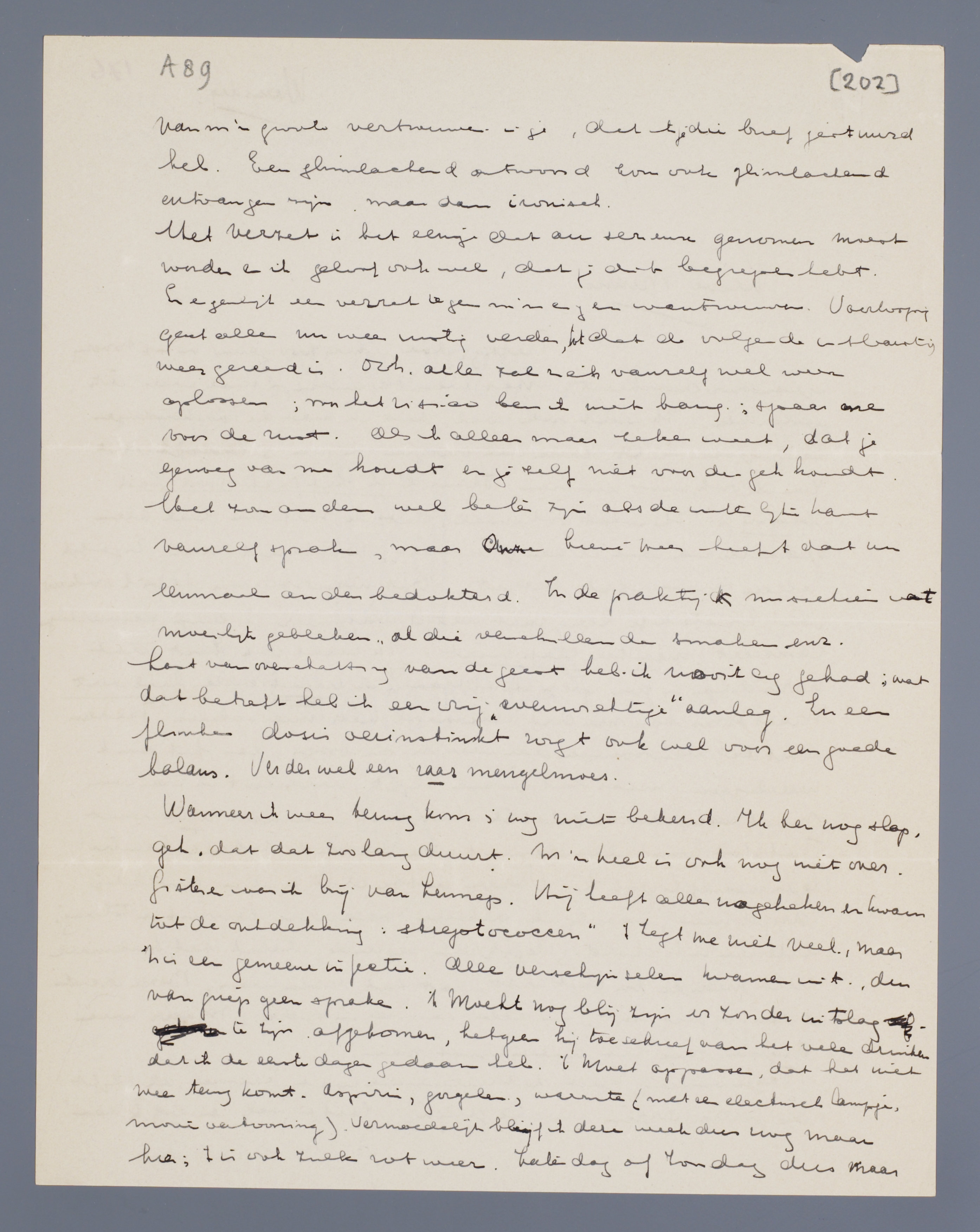 Wanneer ik weer terug kom is nog niet bekend. Ik ben nog slap, gek, dat dat zoolang duurt. M'n keel is ook nog niet over. Gisteren was ik bij van Lennep. Hij heeft alles nagekeken en kwam tot de ontdekking: ‘streptococcen’. 't Zegt me niet veel, maar 't is een gemeene infectie. Alle verschijnselen kwamen uit, dus van griep geen sprake. 'k Mocht nog blij zijn er zonder uitslag te zijn afgekomen, hetgeen hij toeschreef aan het vele drinken dat ik de eerste dagen gedaan heb. 'k Moet oppassen, dat het niet meer terugkomt. Aspirine, gorgelen, warmte (met een electrisch lampje, mooie vertooning). Vermoedelijk blijf ik deze week dus nog maar hier; 't is ook zulk rot weer. Zaterdag of Zondag dus maar weer terug. 'k Schrijf nog wel even.