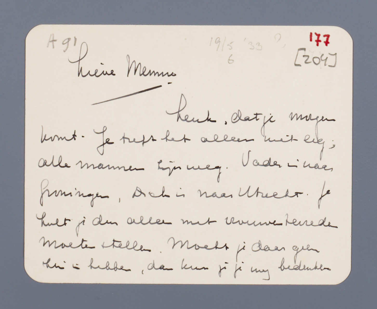 Leuk, dat je morgen komt. Je treft het alleen niet erg; alle mannen zijn weg. Vader is naar Groningen, Dick is naar Utrecht. Je zult je dus alleen met vrouwen tevreden moeten stellen. Mocht je daar geen zin in hebben, dan kun je je nog bedenken.