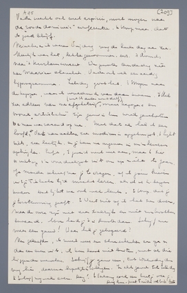 Martje slaapt nu bij mij op de kamer, grappige gewaarwording. Vanmorgen om half 6 de wekker, was minder plezierig. Maar 't is een gezellig kind, zoo glunder en zeer blijmoedig. Vanmorgen heb ik haar in bad gedaan, zonder ongelukken afgeloopen. 'k Heb nu naar Eibergen geschreven, dat ik in elk geval niet eerder kwam dan Woensdagavond, maar 't zal wel Donderdag worden. We moeten maar even zien, hoe gauw Bert weer opknapt. Duurt het nog langer, dan ga ik Zaterdag wel met jou mee naar Eibergen en blijf daar na Zondag nog een paar dagen. Ik schrijf voor die tijd nog wel even. Mijn plannen worden nog weleens in de war gestuurd. Gelukkig, dat ik nooit zulke erge vaste plannen maak.